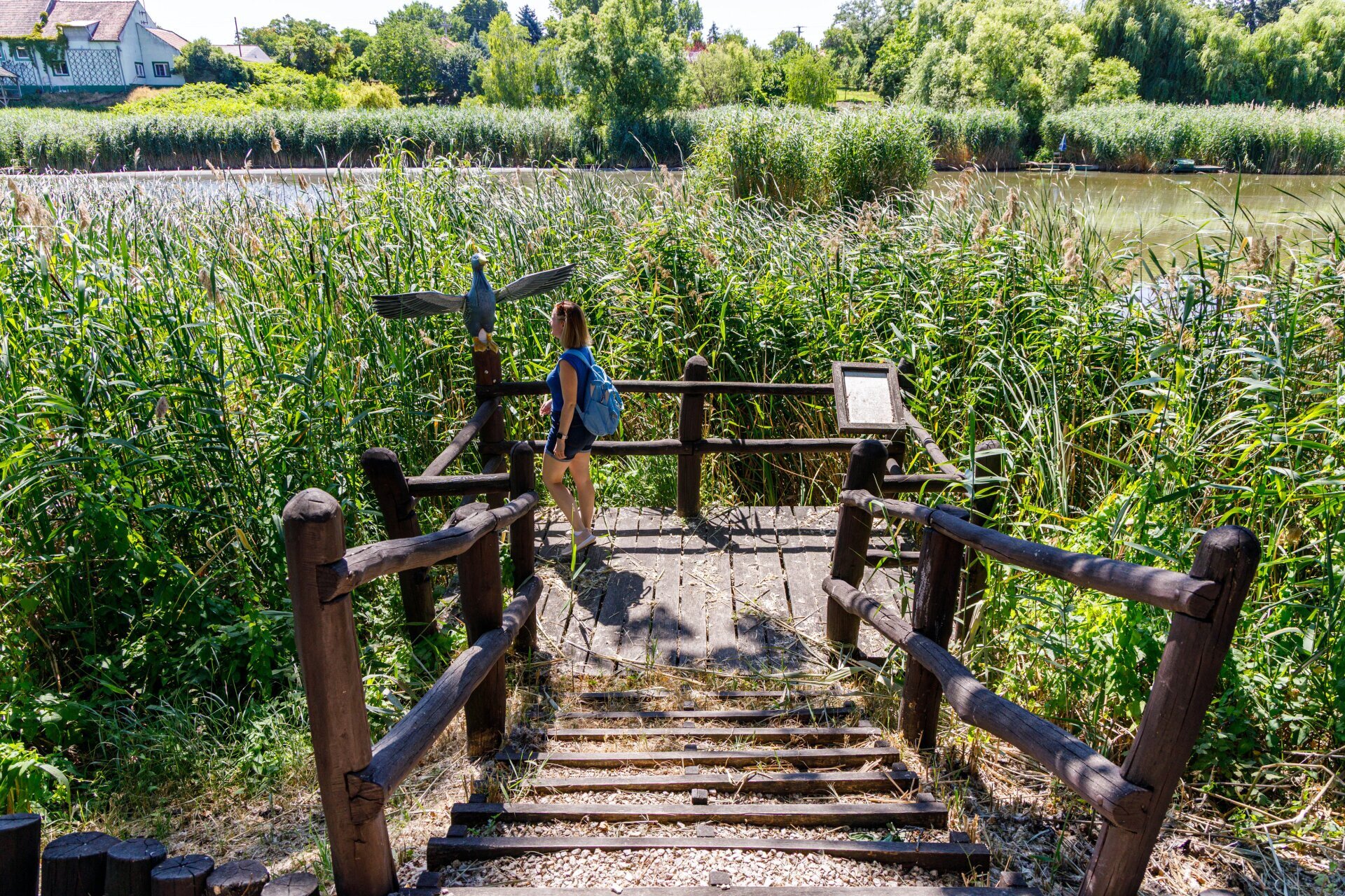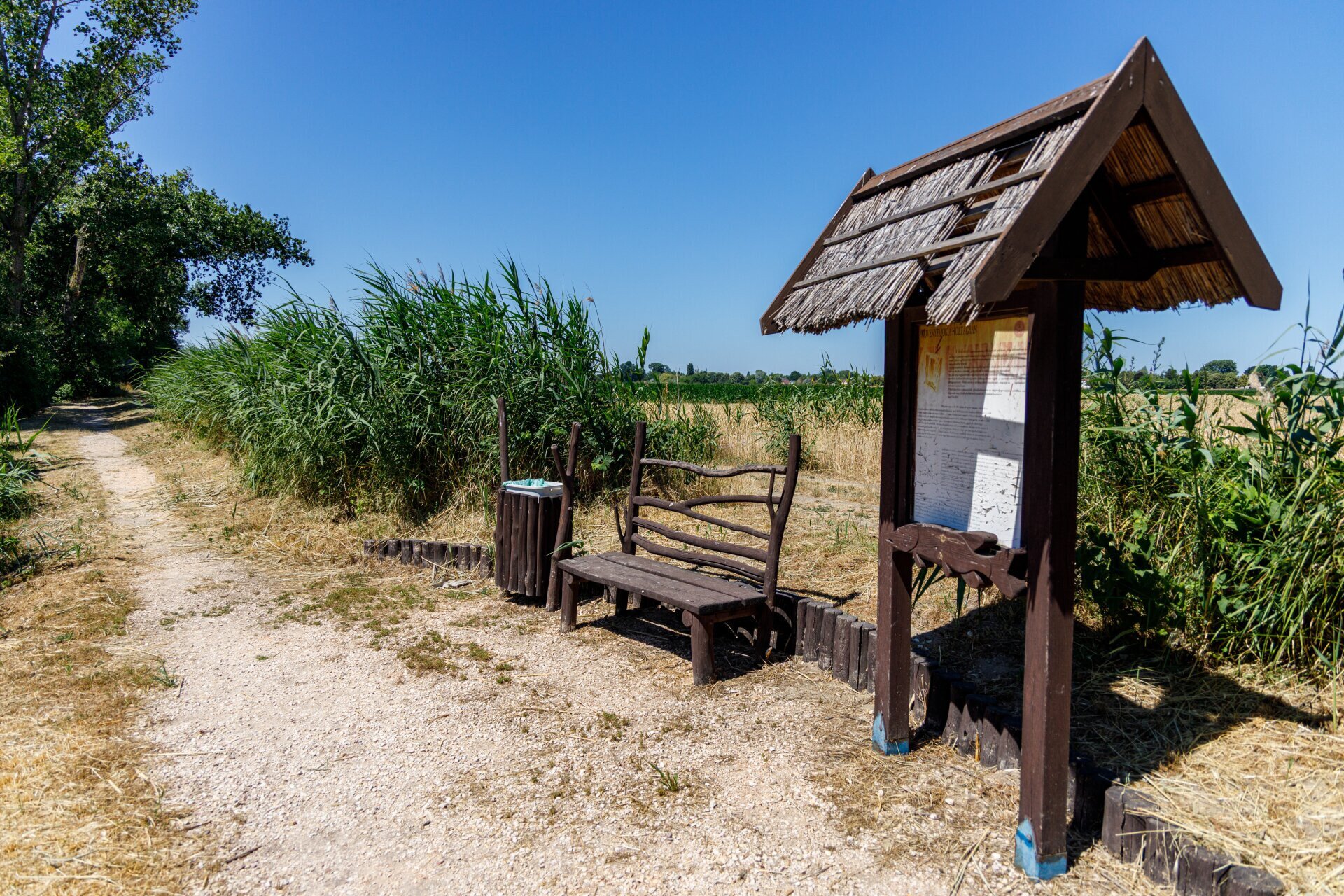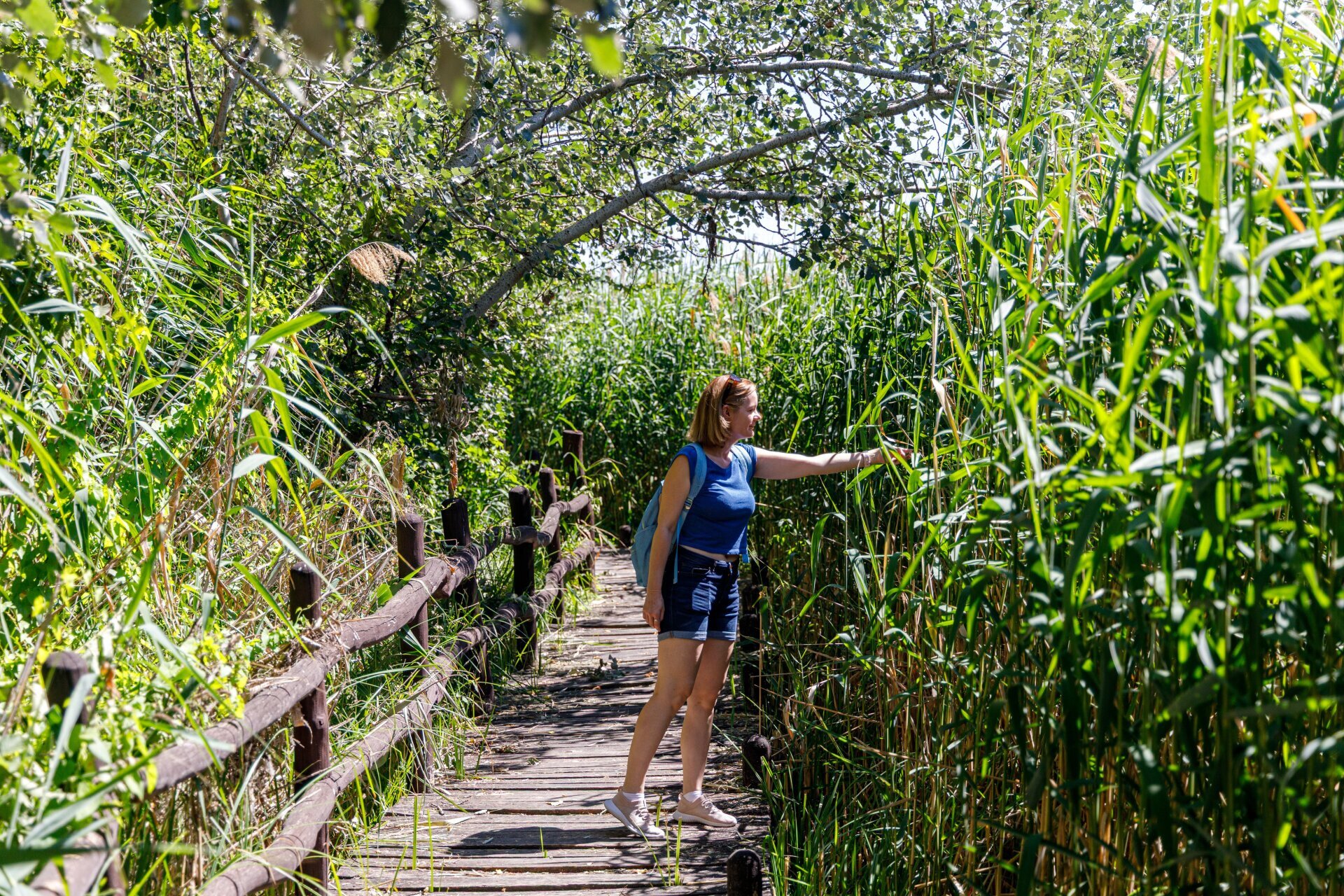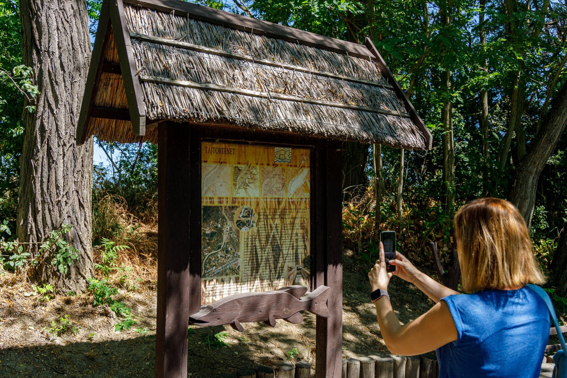 A tanösvényen kis teraszok nyúlnak a nádasba