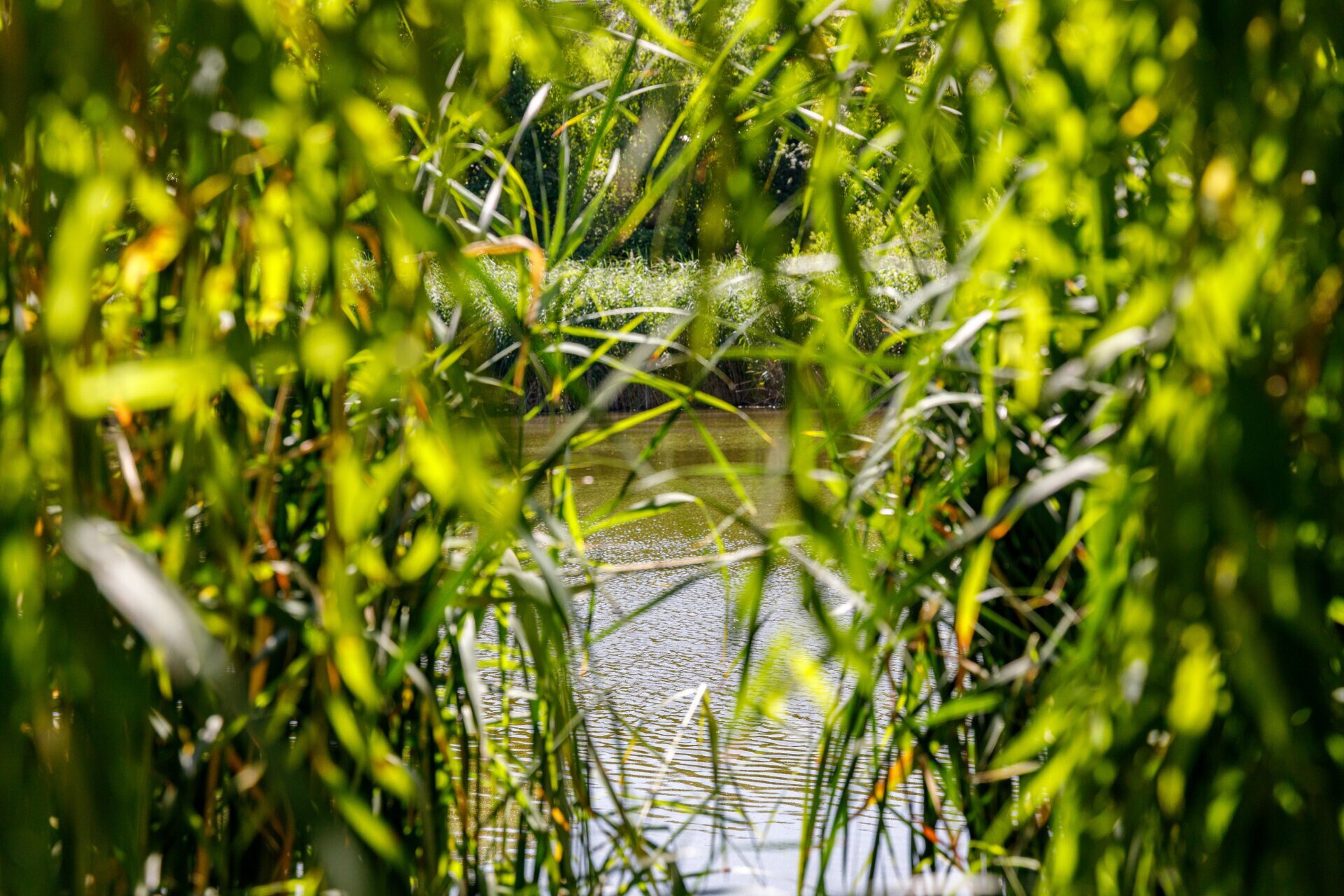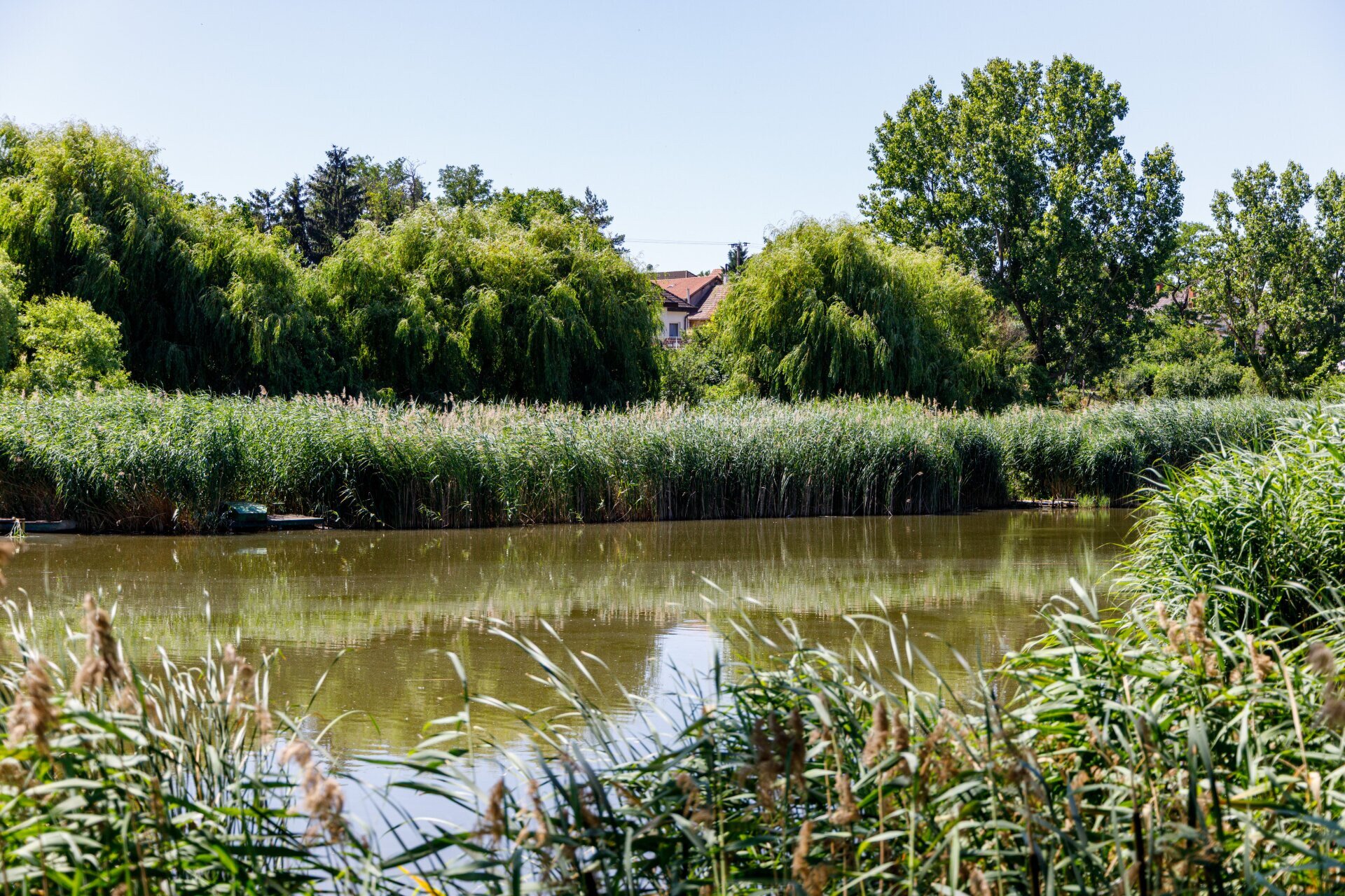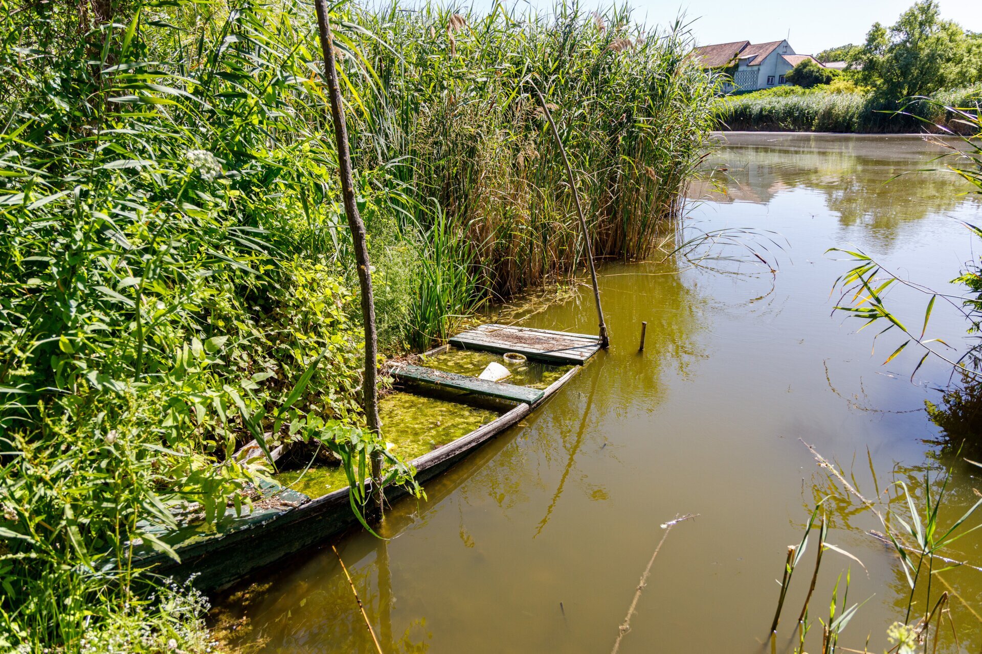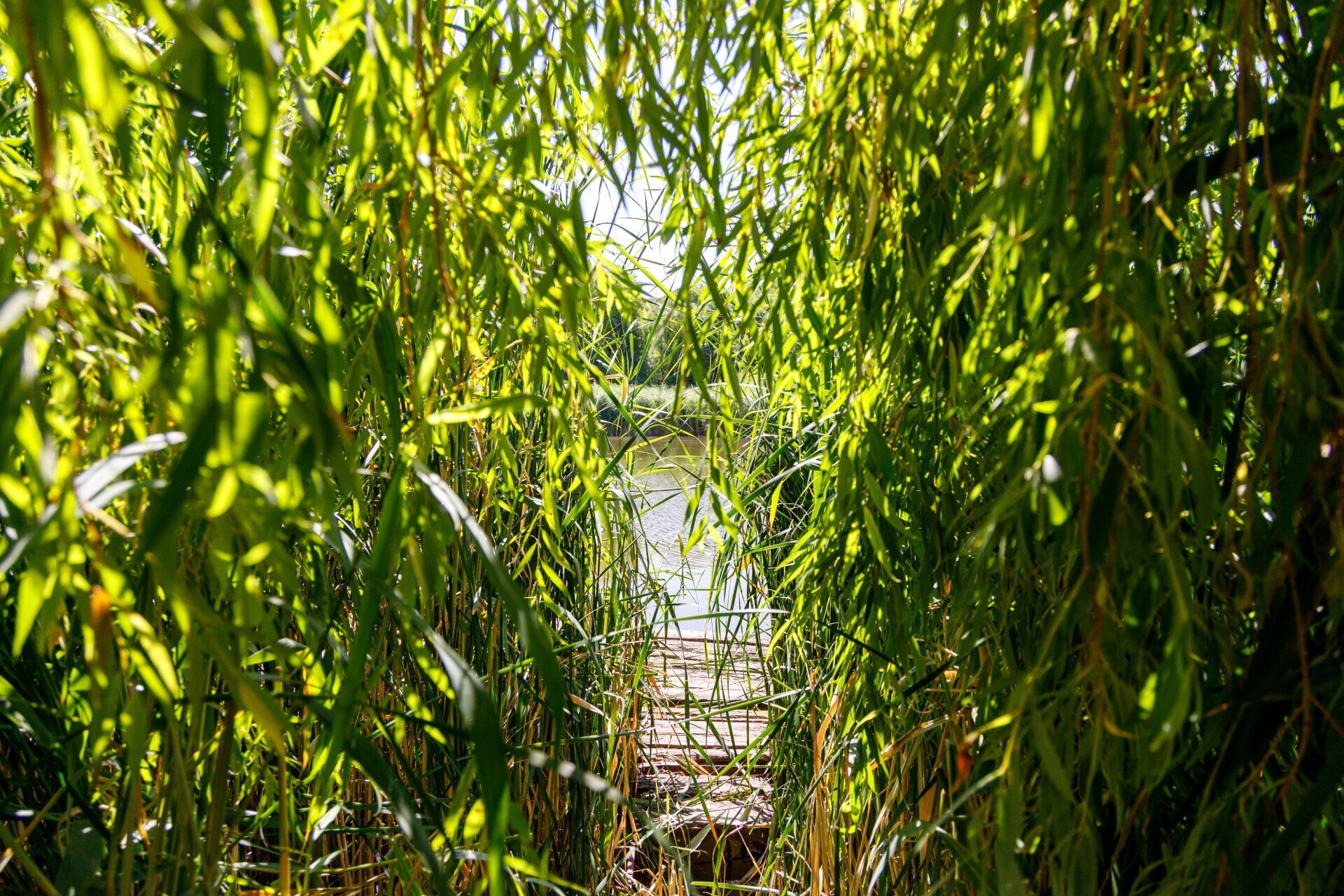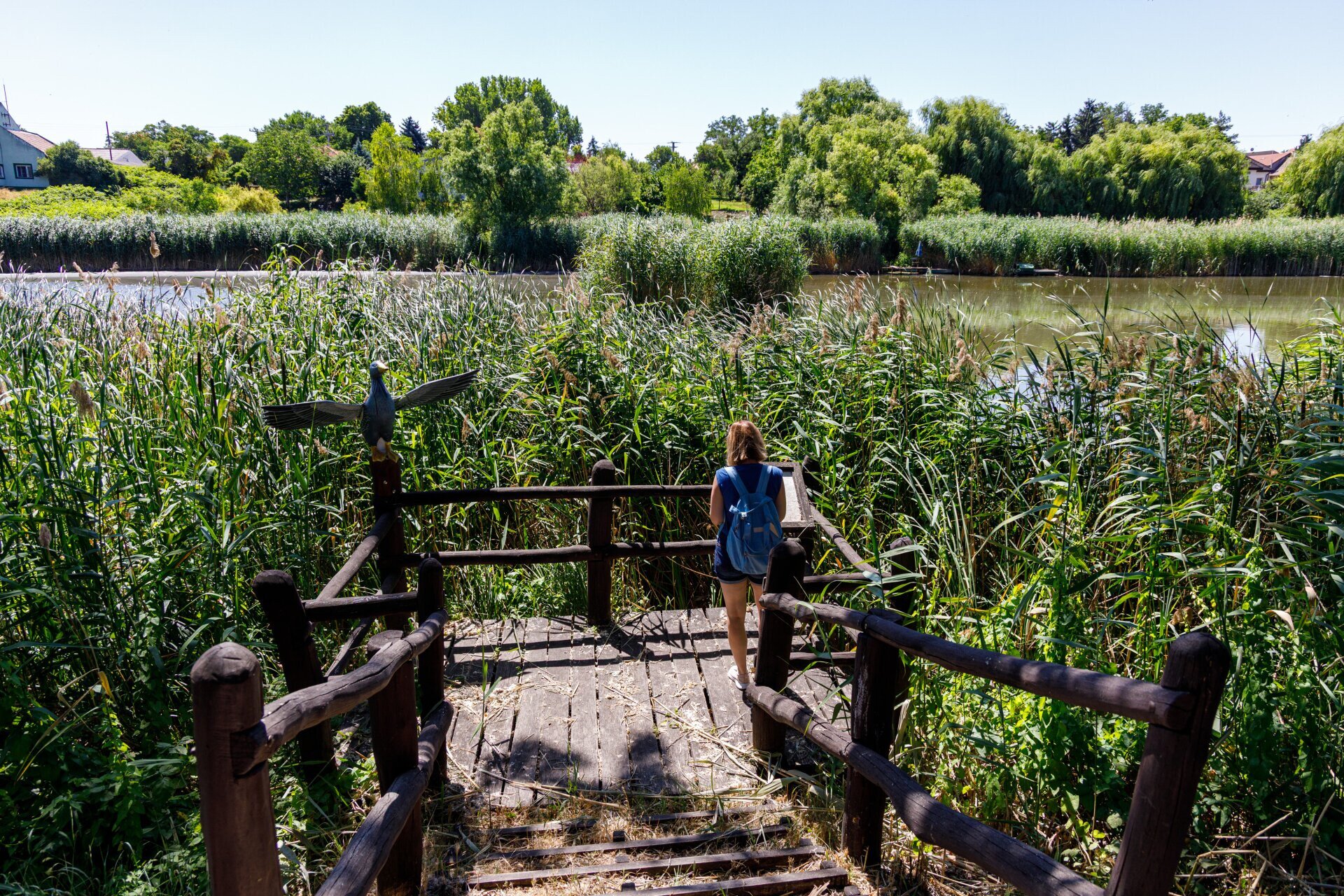 A tanösvényen kis teraszok nyúlnak a nádasba