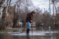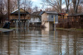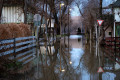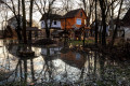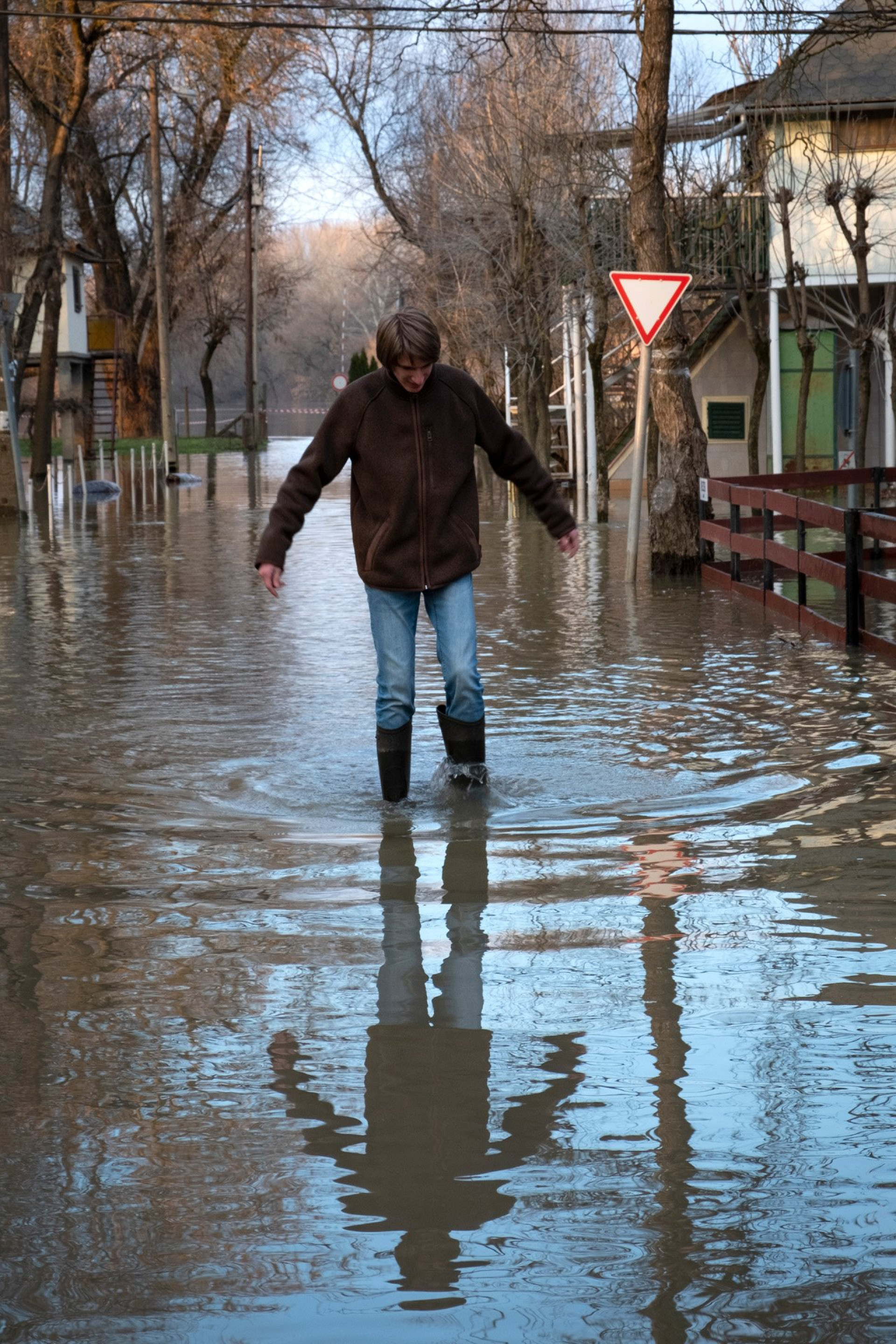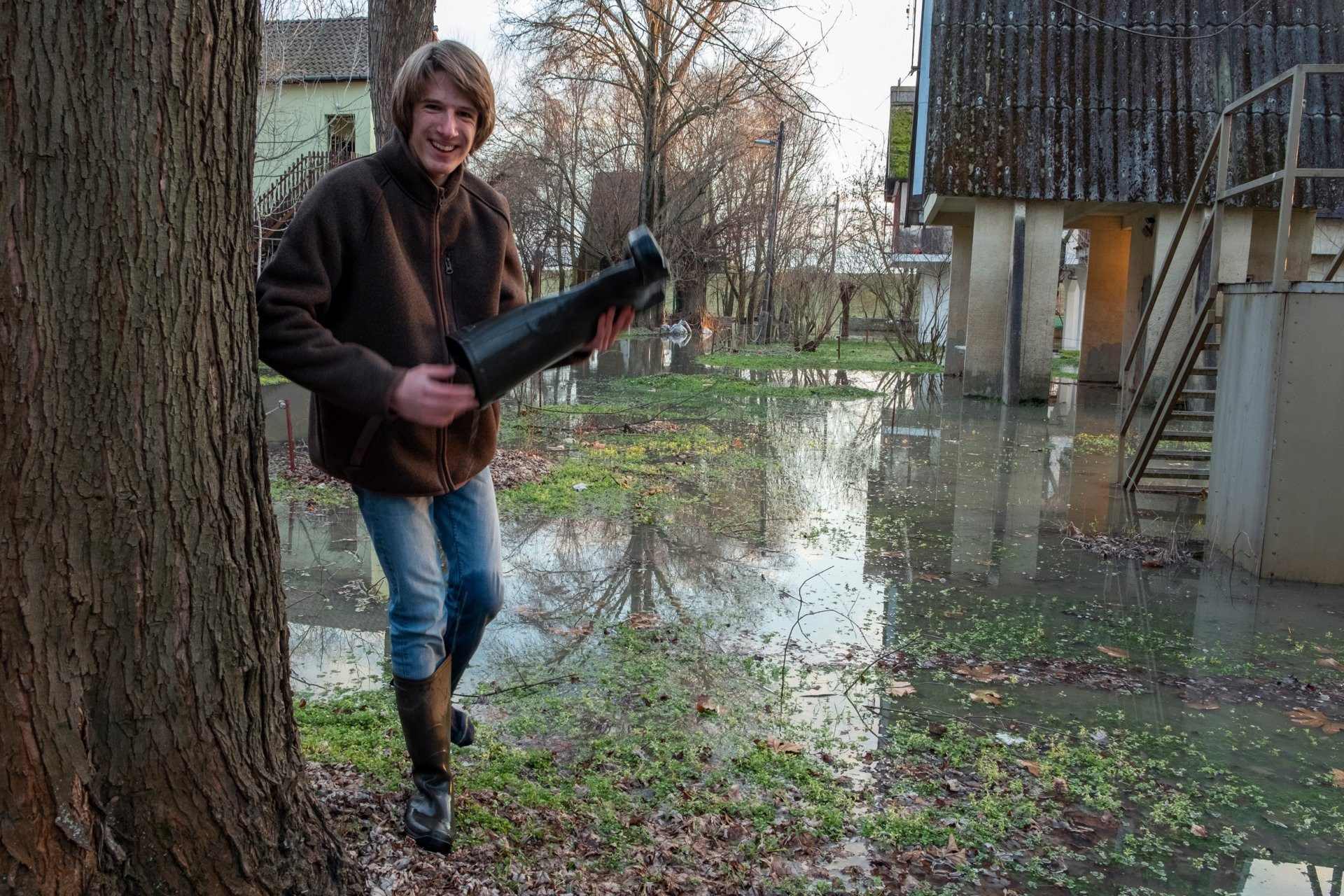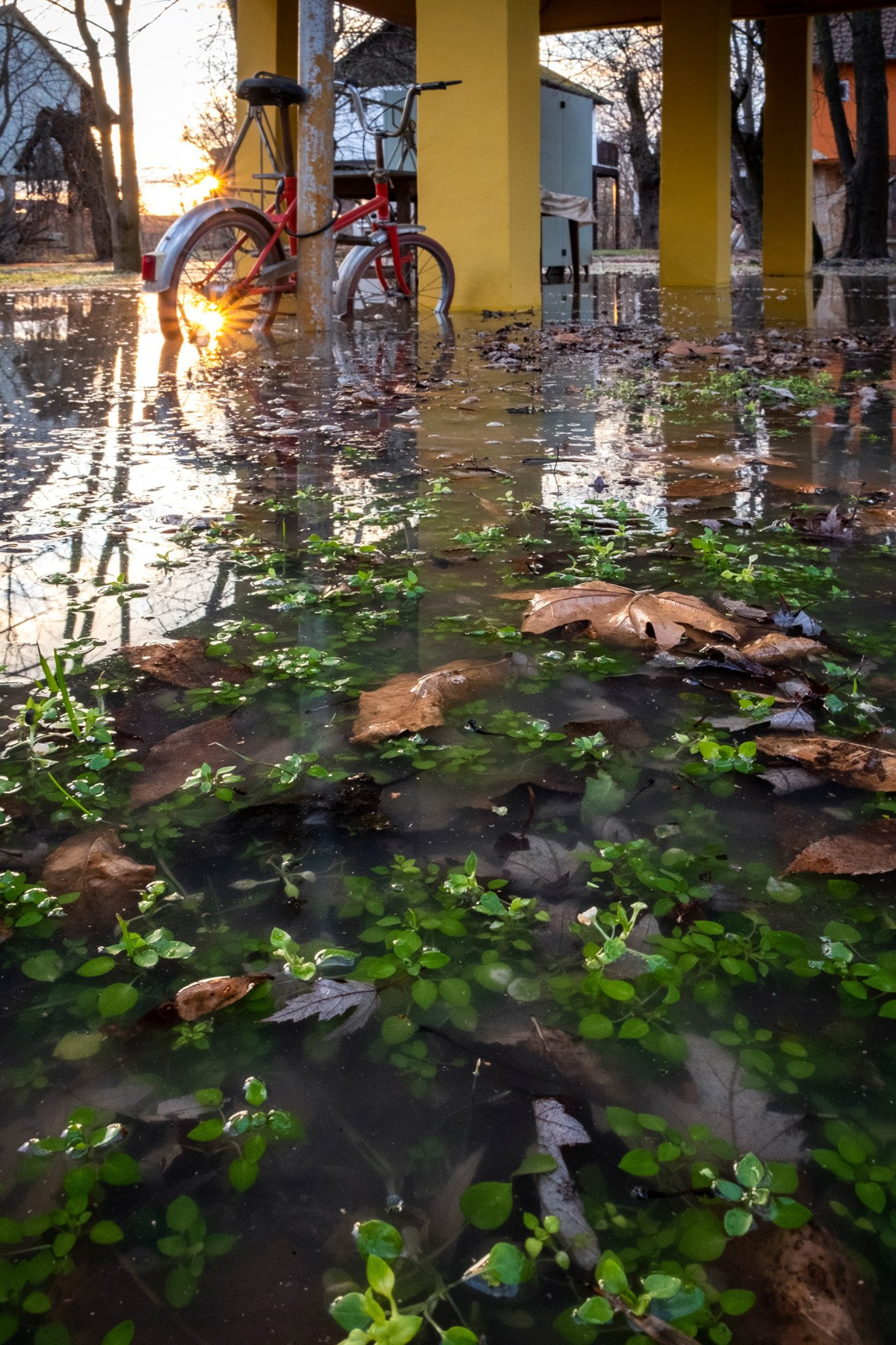 Itt még épp hogy boka fölé ért a víz, de pár lépéssel hátrébb, már a gumicsizmák tetejéig merültünk. Egyébként Tomi mögött, az utca végén van a Tisza eredeti medre