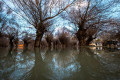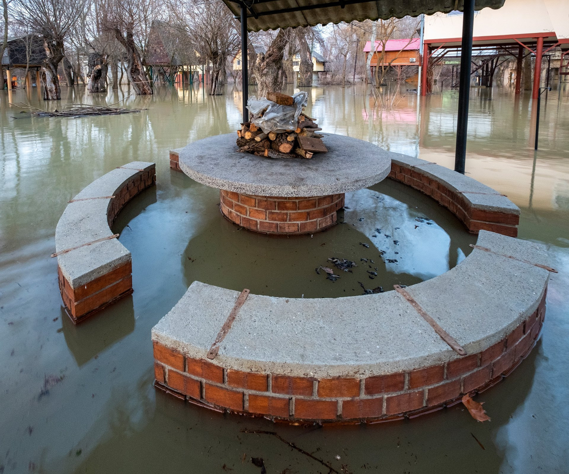 Az egyik részen gyönyörű fűzfák adták a medréből kilépett Tiszával a nem mindennapi látványt