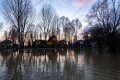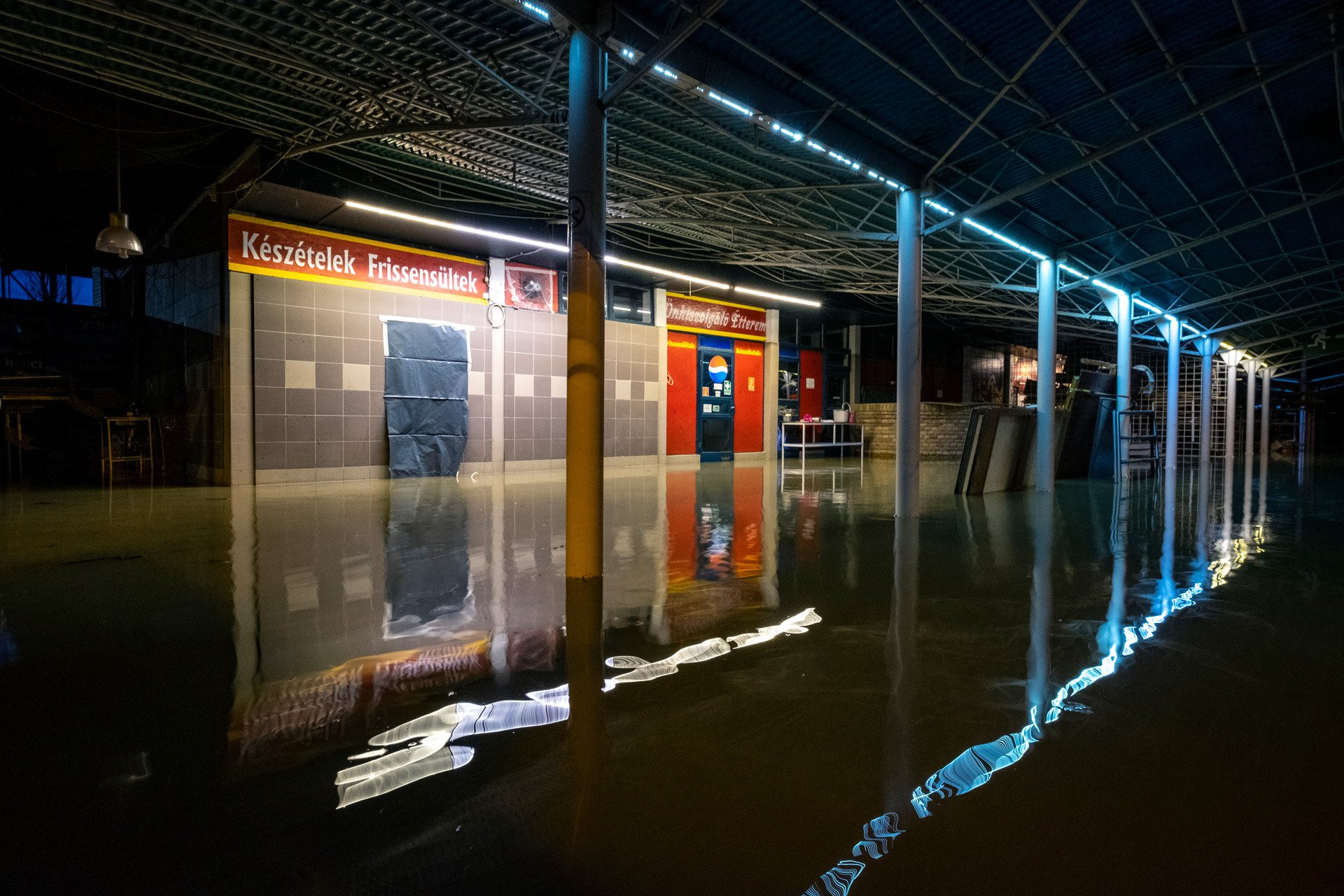Közben ránk esteledett. Elég érdekes hangulata lett a vízzel elárasztott üdülőterületnek, amikor felkapcsolódott a közvilágítás