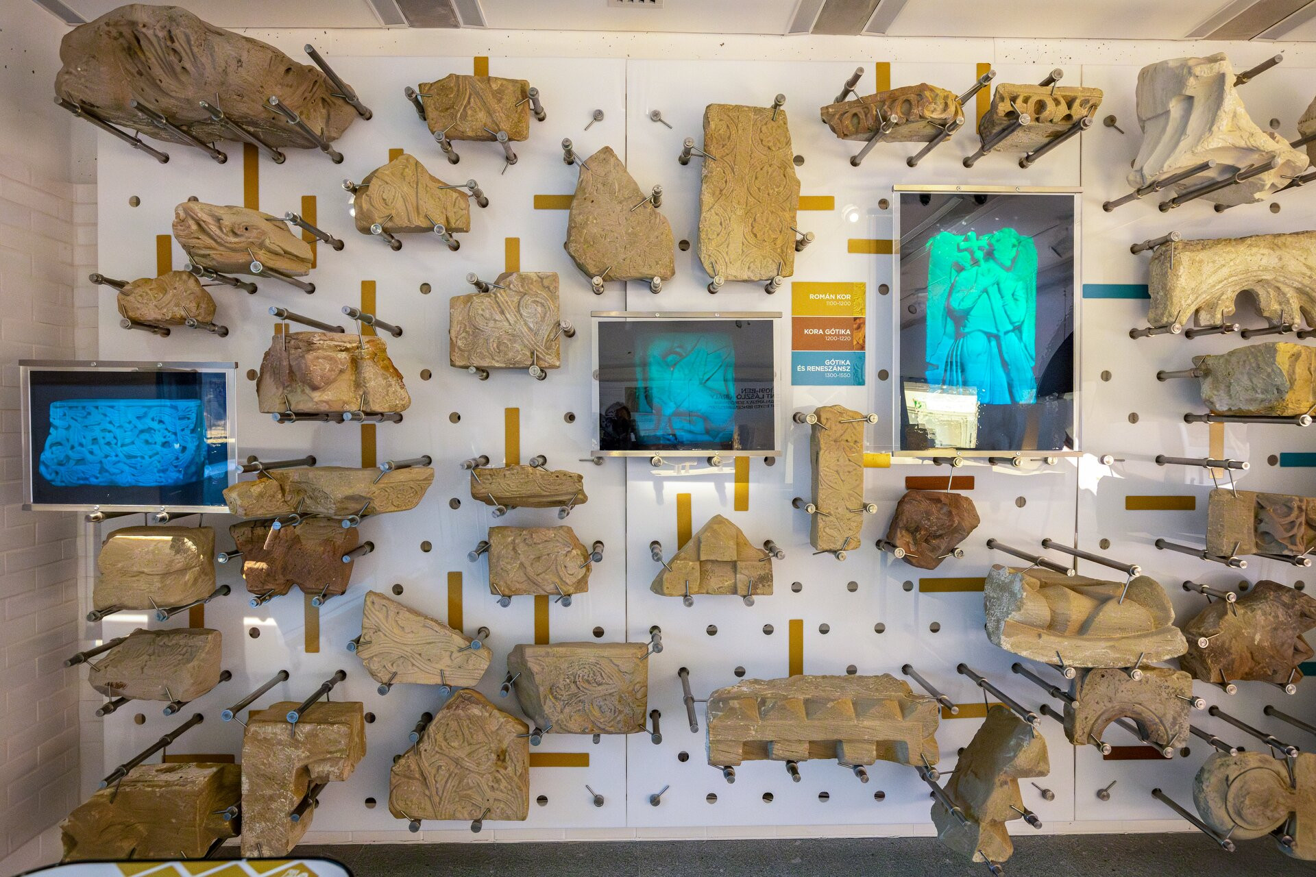 Makettekés részletes alaprajzok szemléltetik a bazilika állapotát az egyes korszakokban