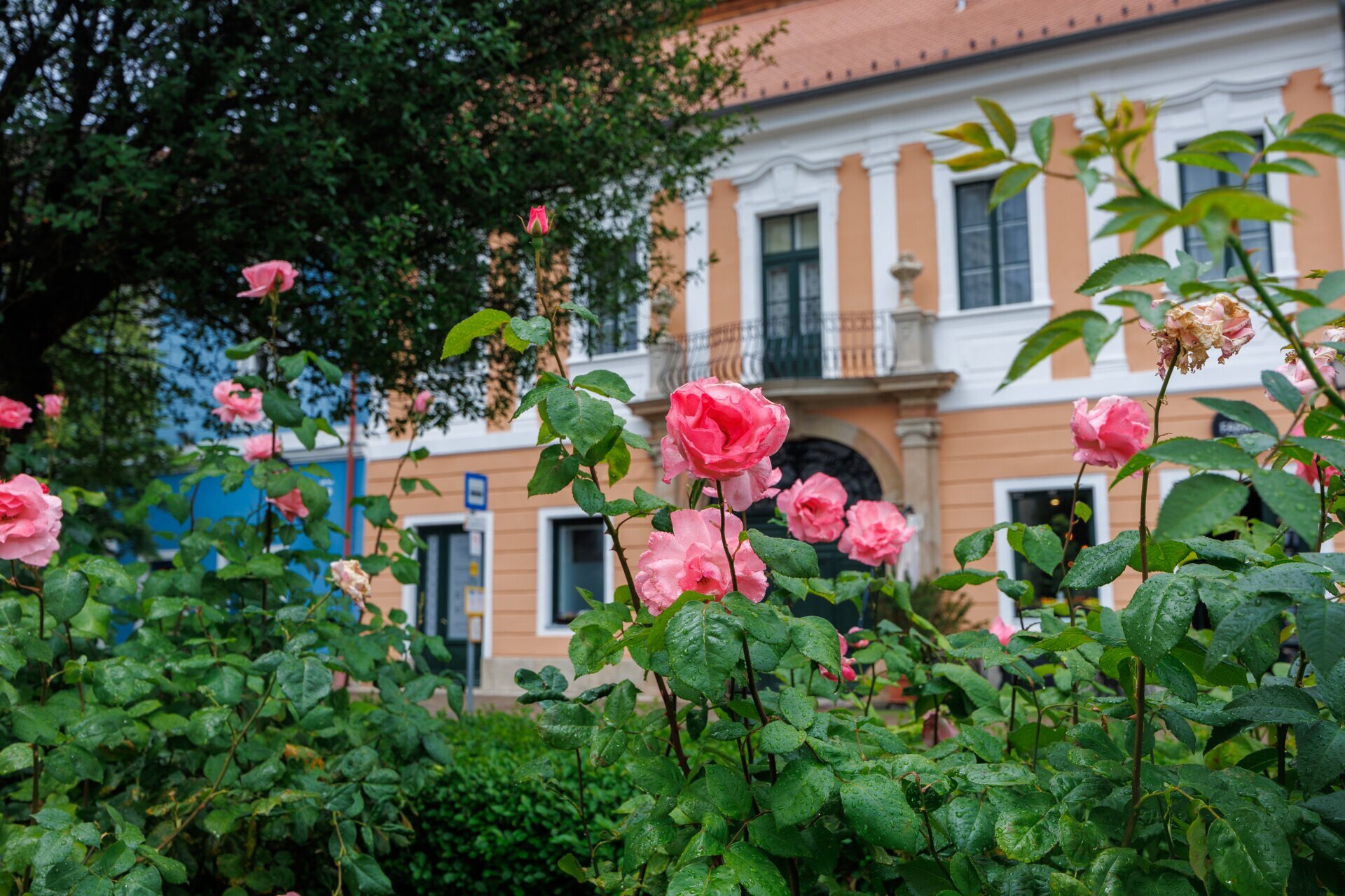 A váci városi séta alatt érdemes kicsit megpihenni és ücsörögni rózsaillatban a főtér valamelyik padján