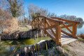 A tanösvény egy szigeten van, ahová ezen a kis fahídon lehet bemenni