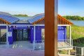 Faborítás a fémvázon, ilyen a kilátó belülről. A „lábasházakat” pedig igyekeztek környezettudatosra tervezni, az épületek fűtését levegő-víz hőszivattyúval oldották meg, a fűtés-hűtéshez pedig napelemrendszer szolgáltatja az elektromos áramot.