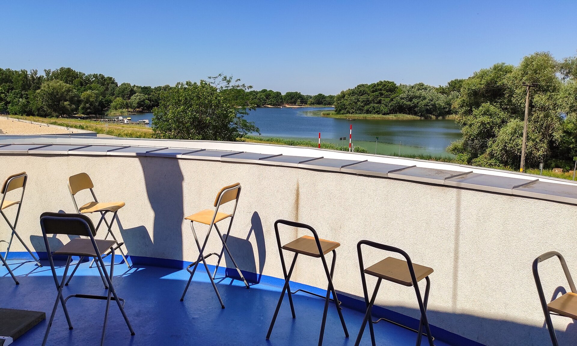A legfelső szintről, a kilátóteraszról nézve igazság szerint már nem sok látszik a tóból, de ha már itt vagyunk, szusszanjunk egyet.