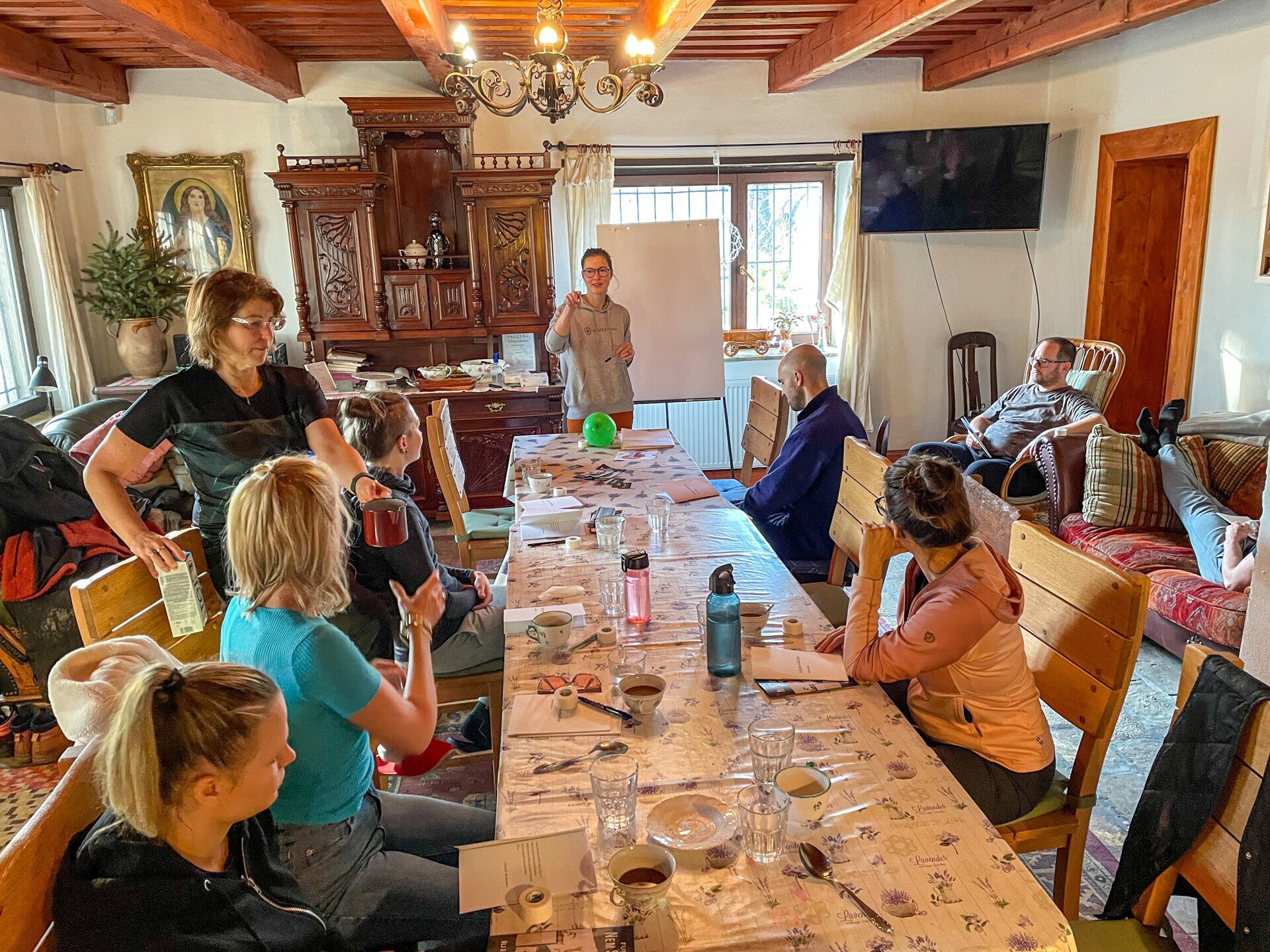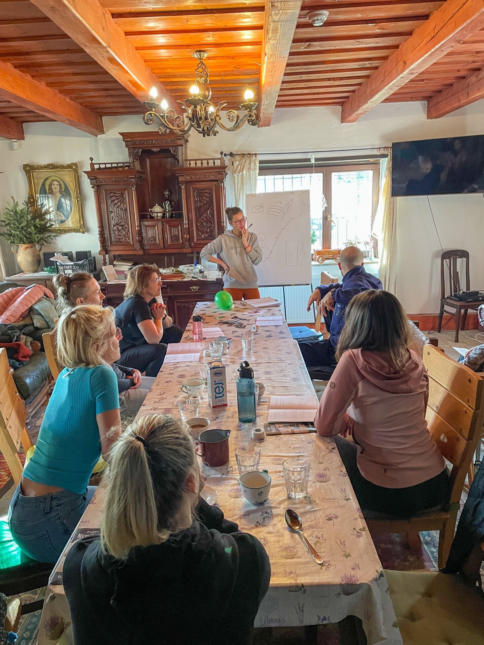 Ahogy a képen is látszik, a workshopok alatt nem egy szigorú tanórát kell elképzelni. Mivel ez volt az első ilyen hétvégén, nincs összehasonlítási alapom, de elképesztően jó csapat gyűlt össze a kis malomban, élmény volt velük a hétvége
