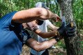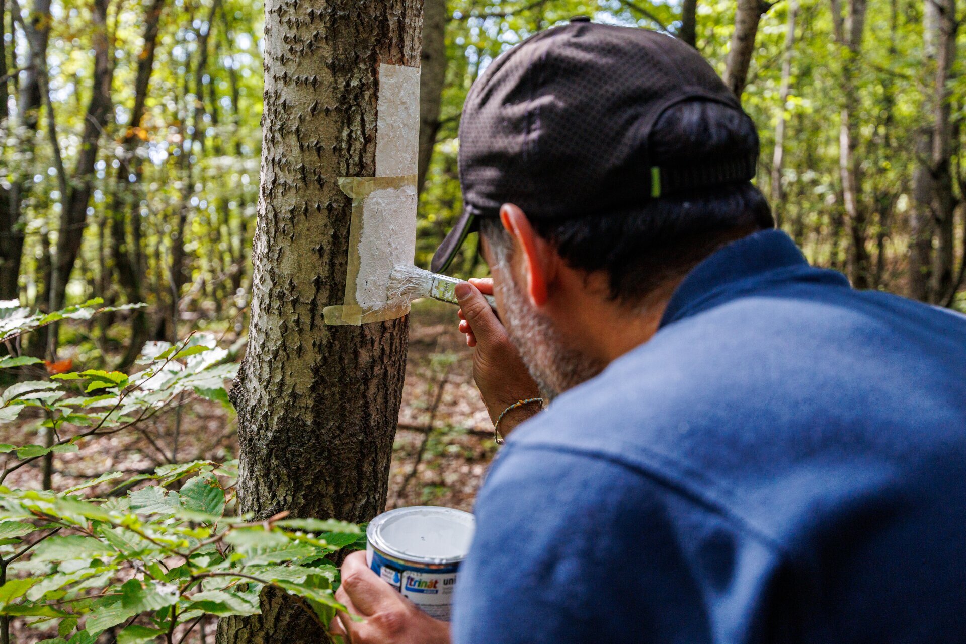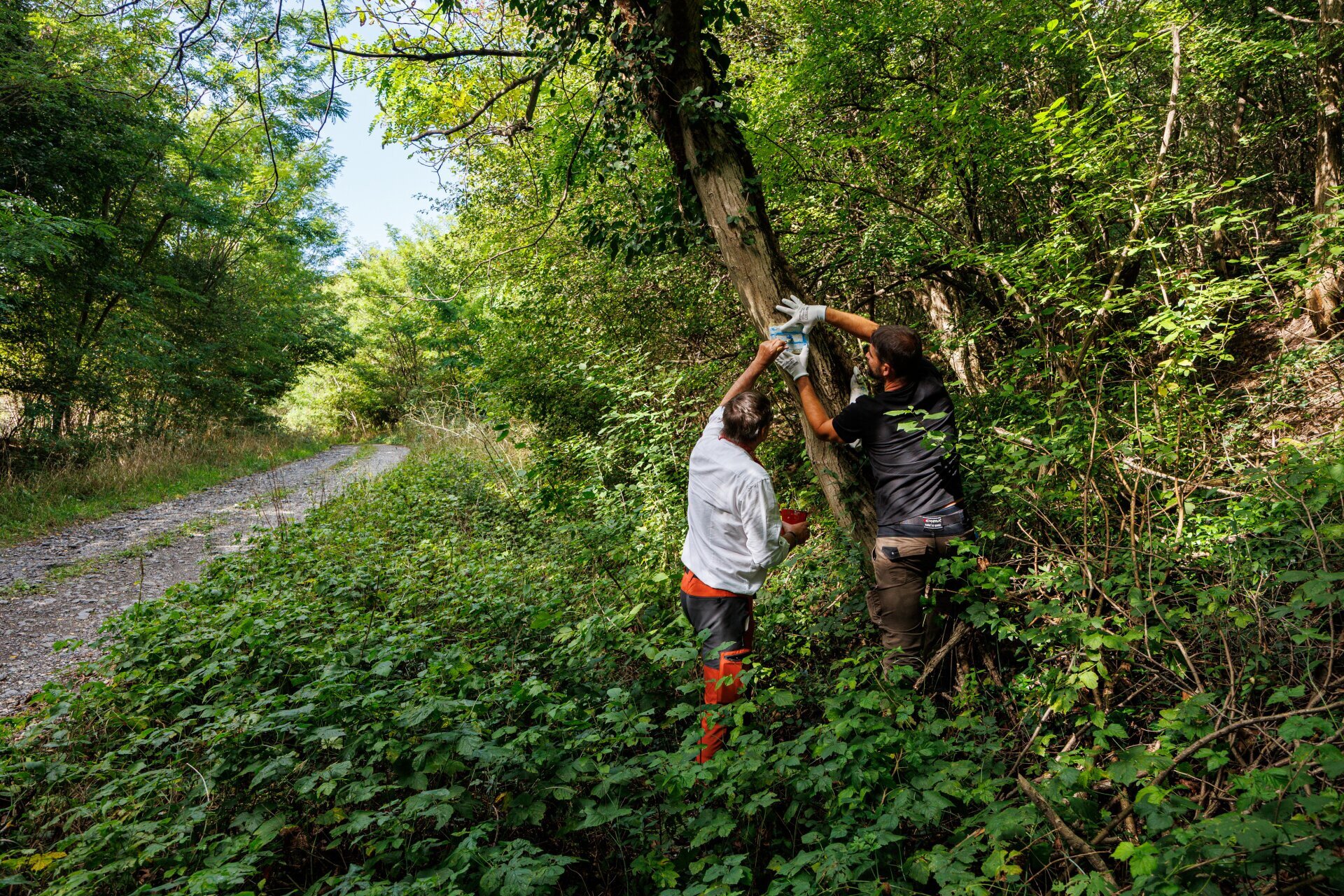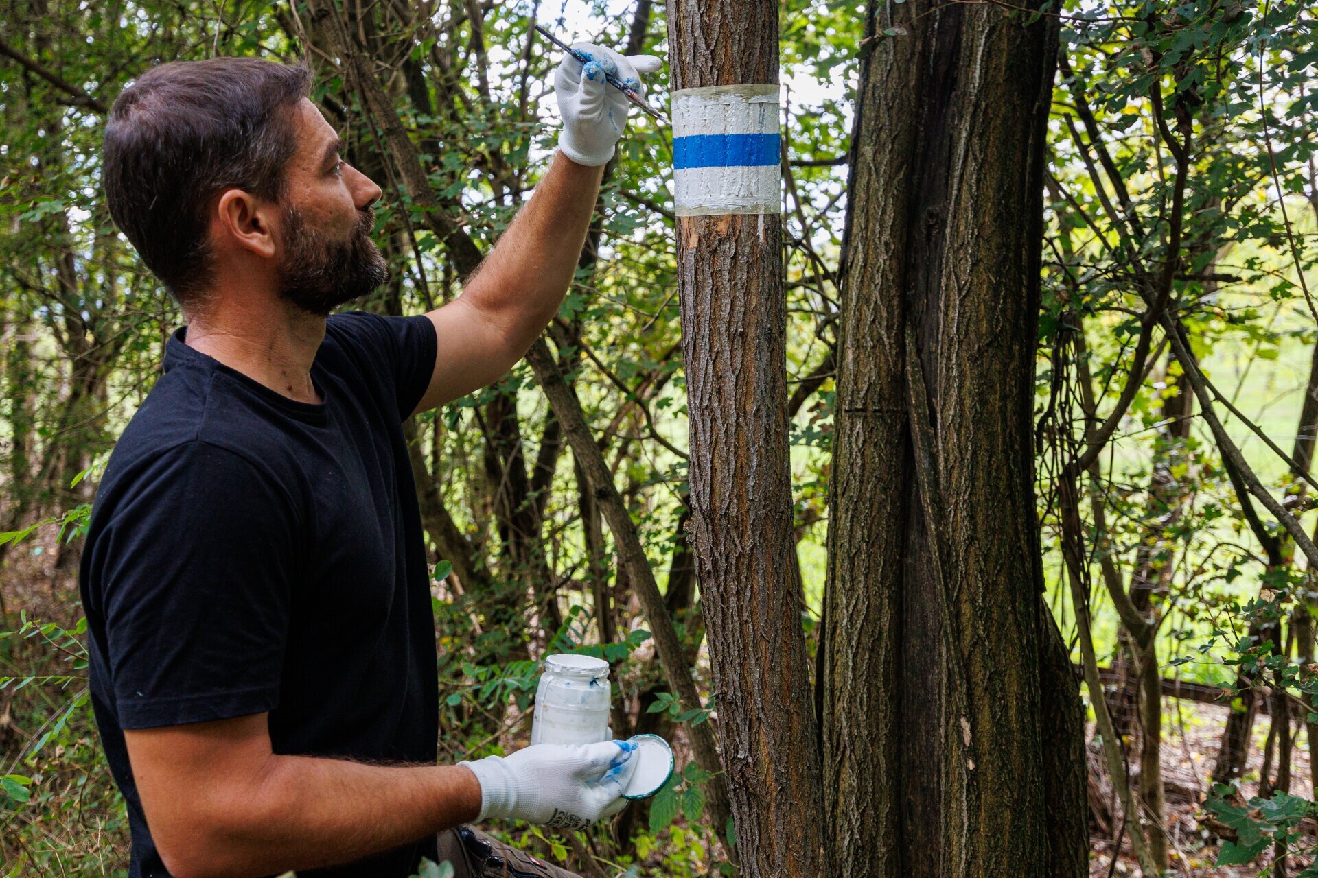 A Magyar Természetjáró Szövetség munkatársai festették fel a kék sáv jelzéseket az Országos Kéktúra új szakaszán