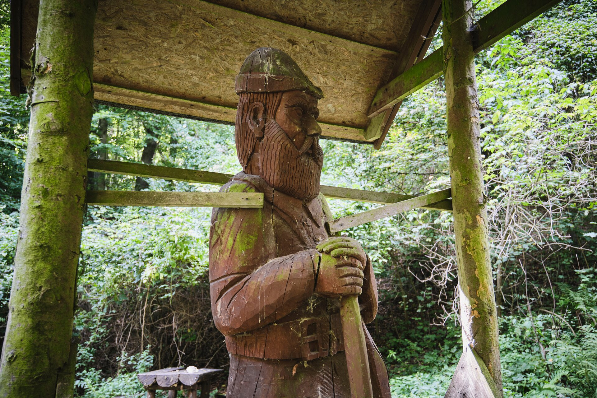 Ismeretlen fafigura a Mátyás-kút melletti pihenőhelyen