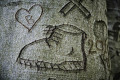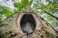 A Pisanello festményén sokkal barátságosabb arcot vágó Zsigmond királyunk faodúban készült domborműve Várgesztes fölött