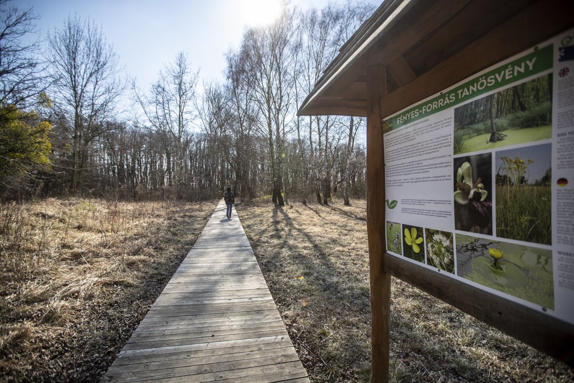 A tanösvény útvonala szinte végig a víz fölötti pallósoron vezet
