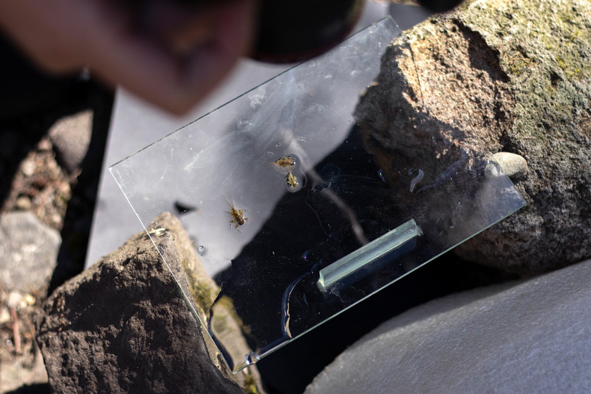 Az egyik patakszakaszon pedig domolykókat fényképezett ezzel az érdekes, puskacsőszerű objektívvel, amelyet a víz alá is lehet meríteni