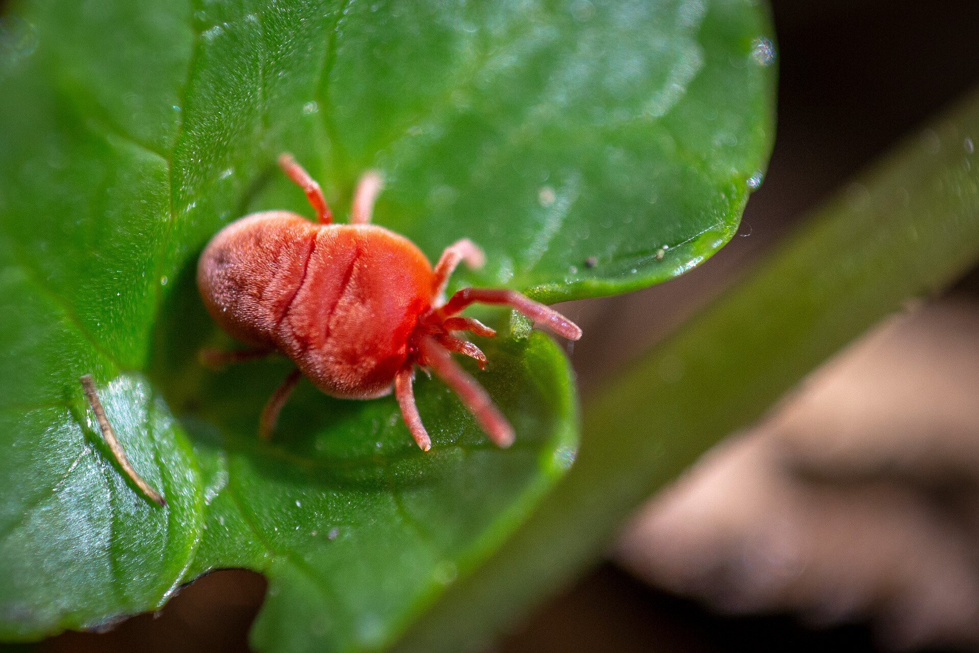 Ez a plüssfigurára emlékeztető atka szerencsére elég lomha volt, így nem volt nehéz a keresőben megtalálni, ahogy ezen a salátaboglárka-levelen sétál