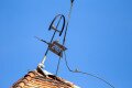 A tetőn verebek csiviteltek és ugráltak a kissé csálén álló, szélkakasnak tűnő szerkezeten, amin egy 1975-ös dátum olvasható
