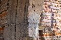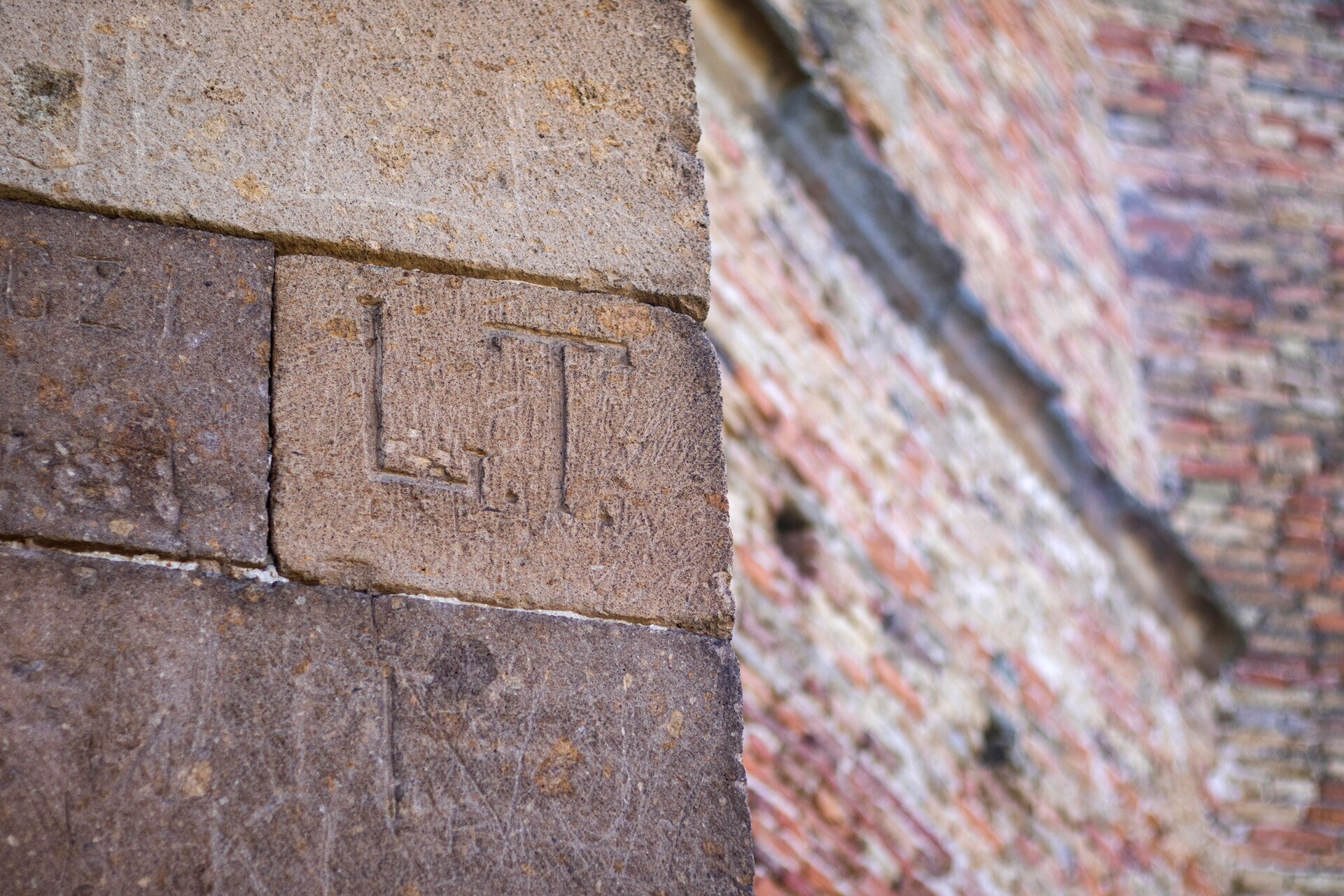 Az egykori templomhoz vezető nyílás keretezése reneszánsz stílusú faragott kővel van díszítve