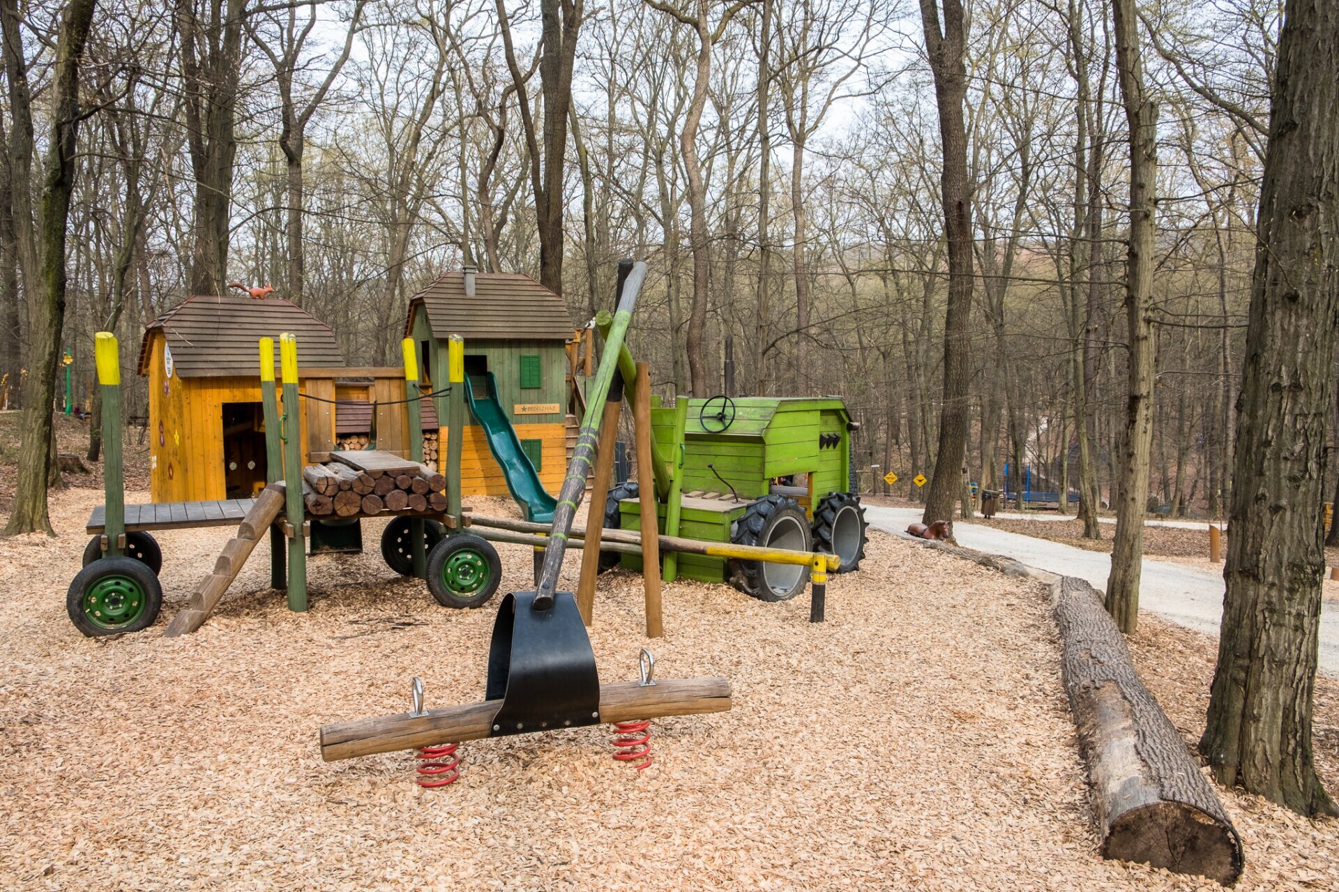 Ennél kreatívabban nem lehet egy fakitermelésre befogott traktort játszótéri elemmé alakítani