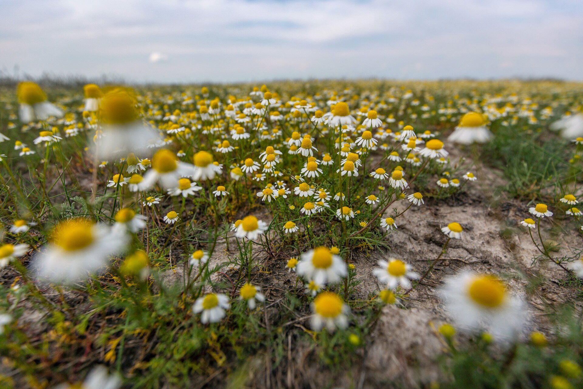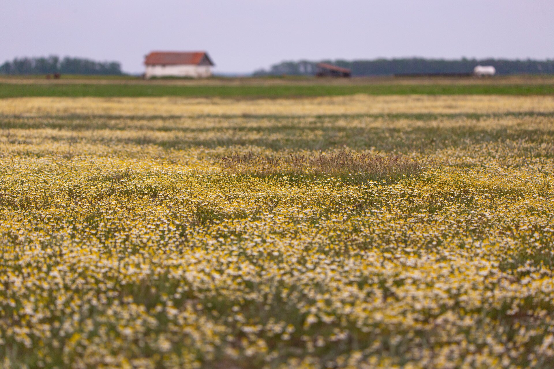 Gyönyörű kamillamezők virítanak a Hortobágyon