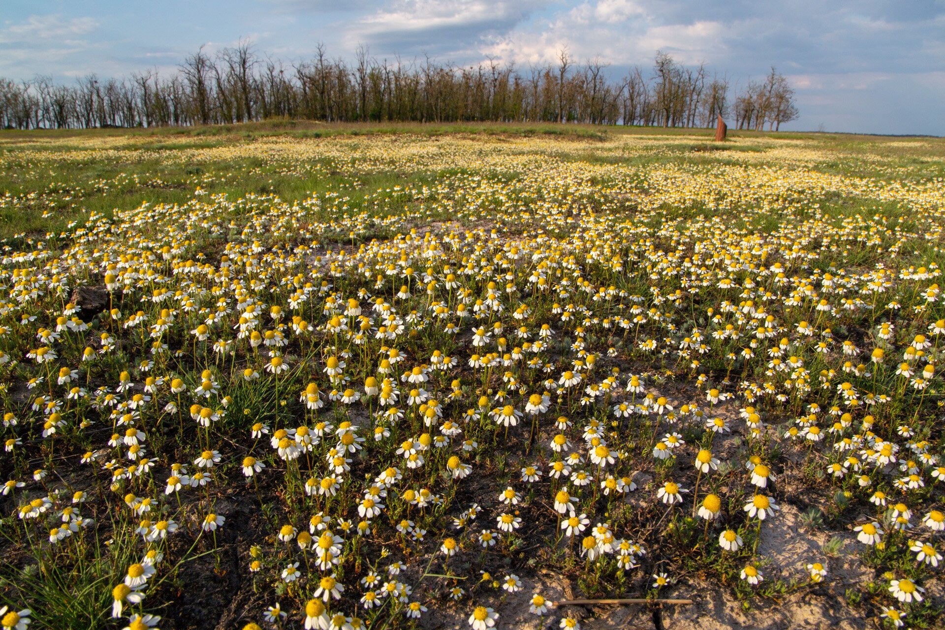 Kamillmező a Szálkahalmi tanösvény szikfoltjain