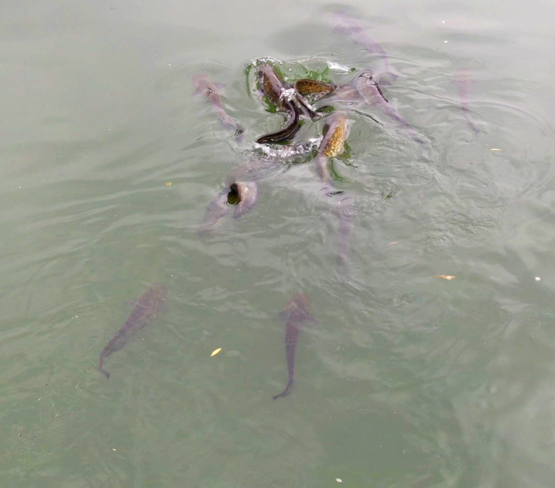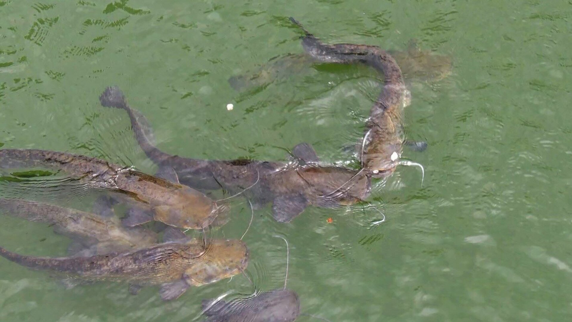 Harcsák sietnek a finom falatokért