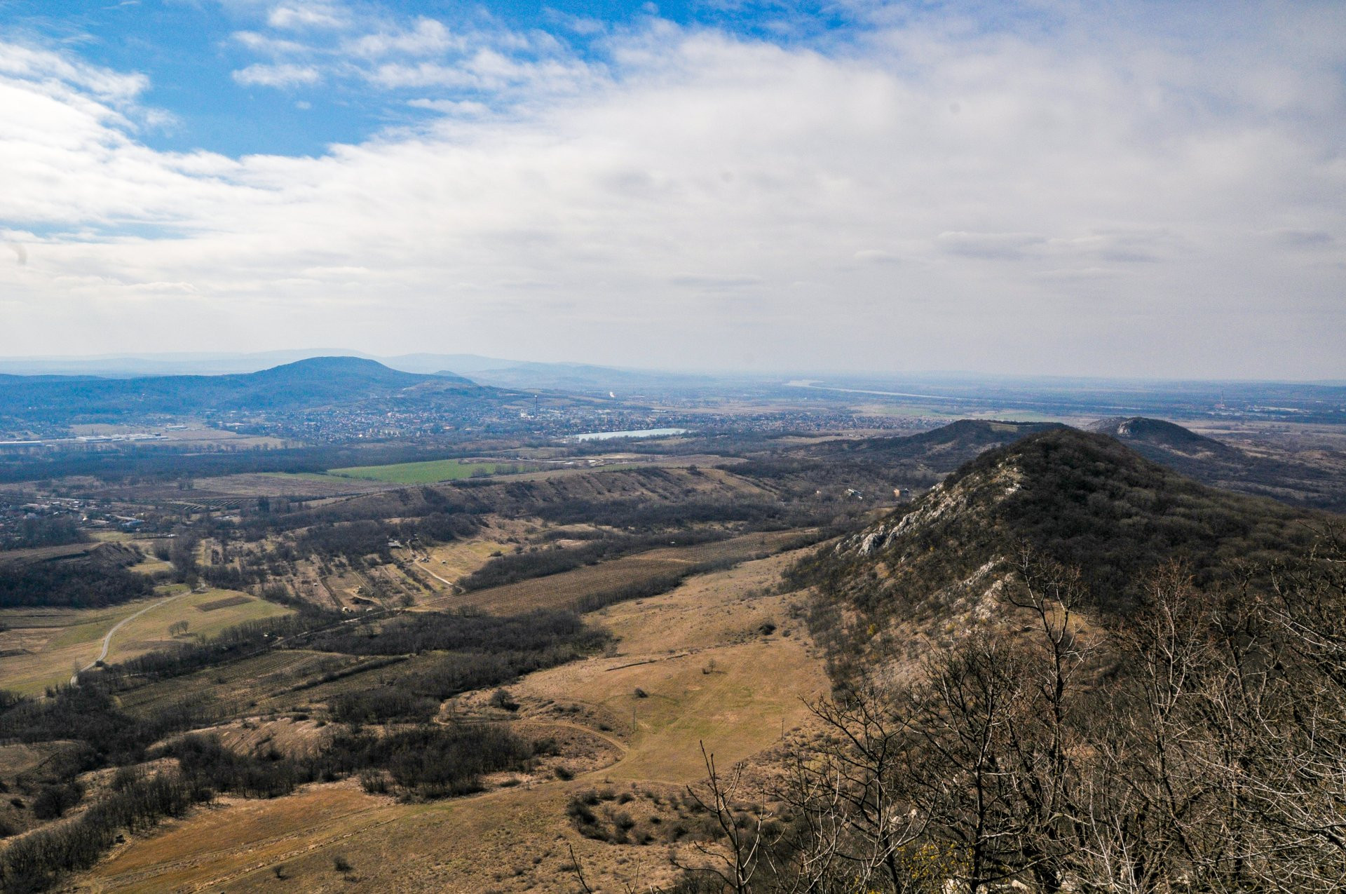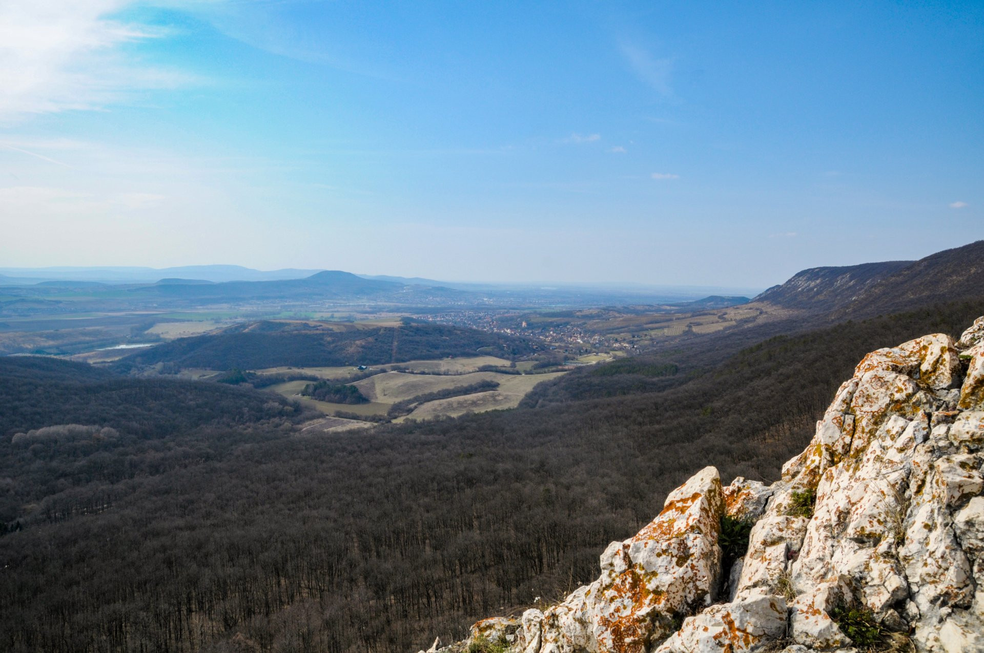 Kilátás a Kémény-szikla tetejéről a Dorogi-medence és a Gerecse felé