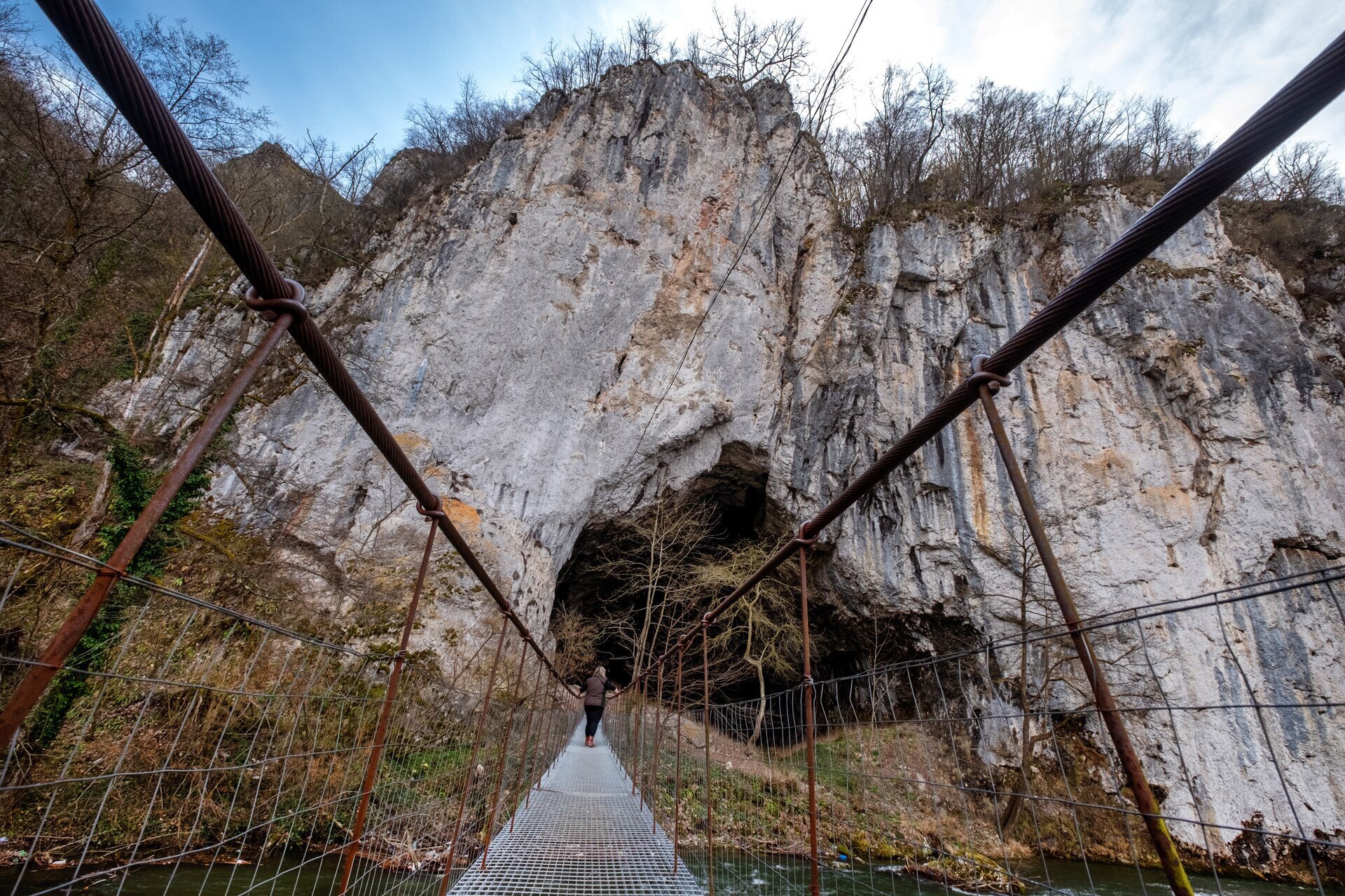 A függőhídon egy vaskapu védi a barlangot a hívatlan vendégektől