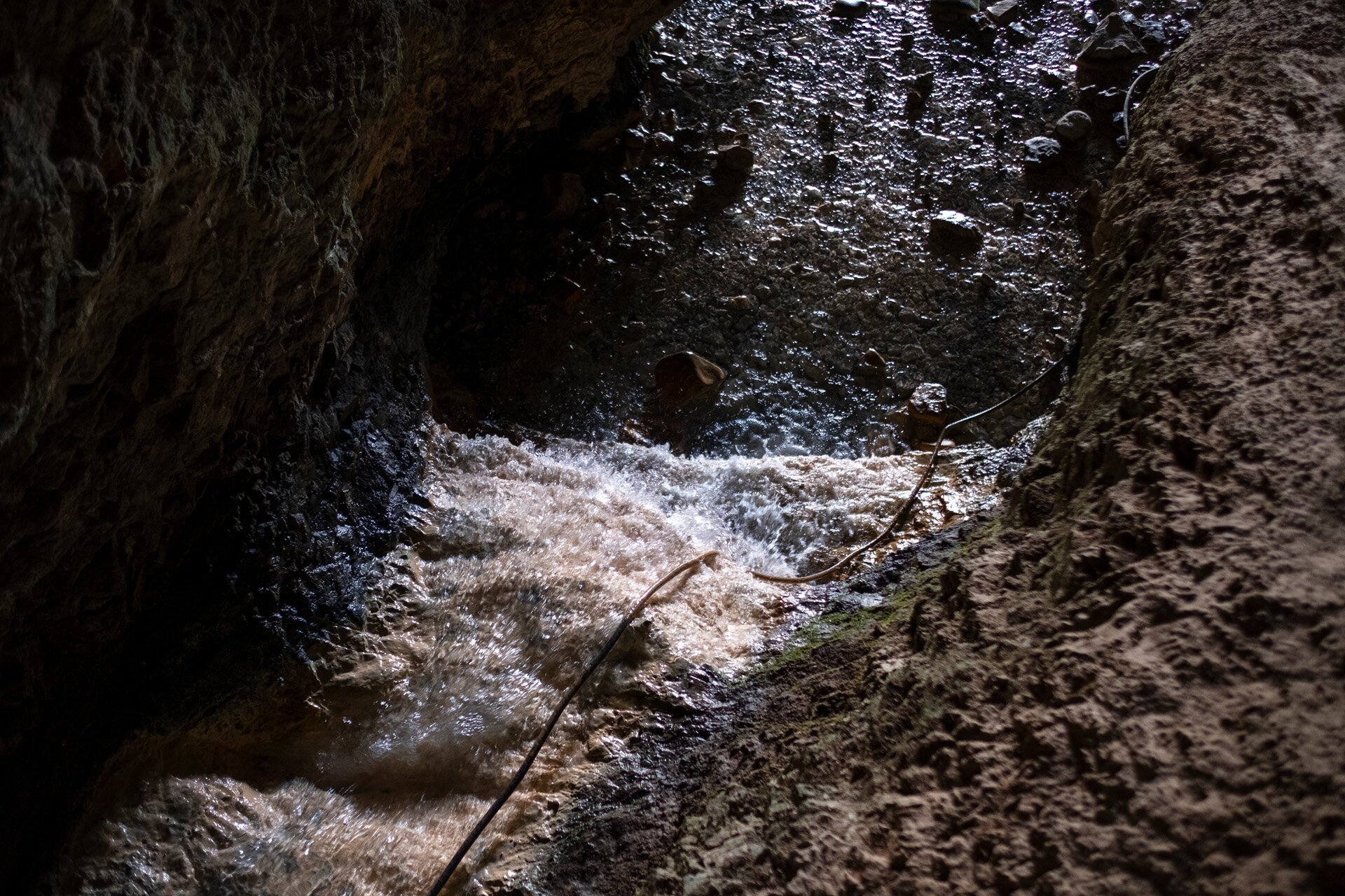A barlang mélyéből patakként igyekszik kifelé az ásványi anyagokban gazdag víz
