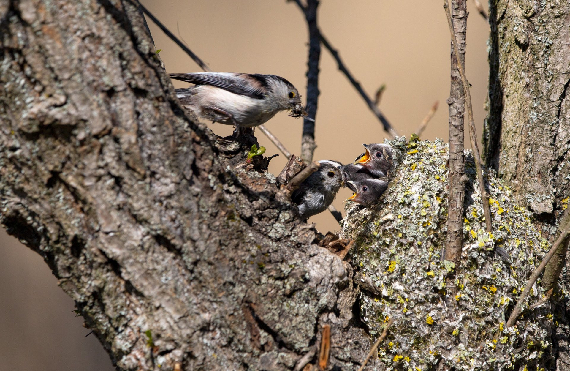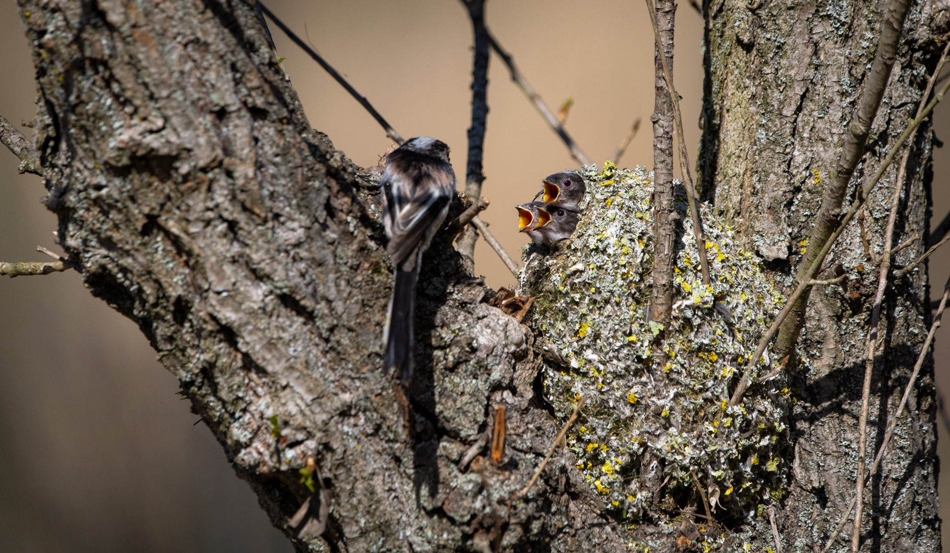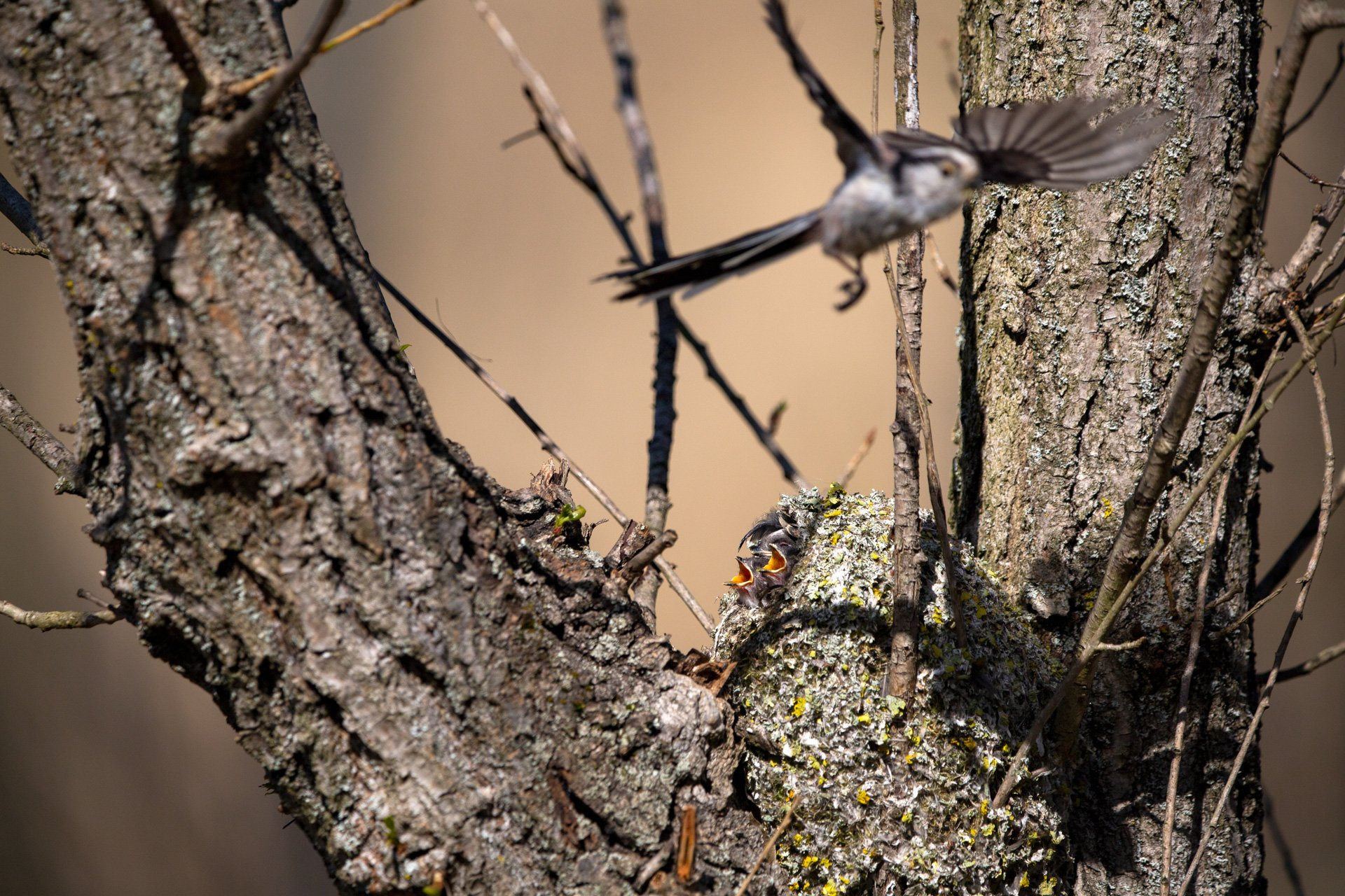 Érkezik egy újabb adag finomság. A szülők nem repülnek egyből a fészekhez, hanem előbb a környező fák és bokrok ágain ide-oda repkedve felmérik, hogy biztonságos-e a terep.