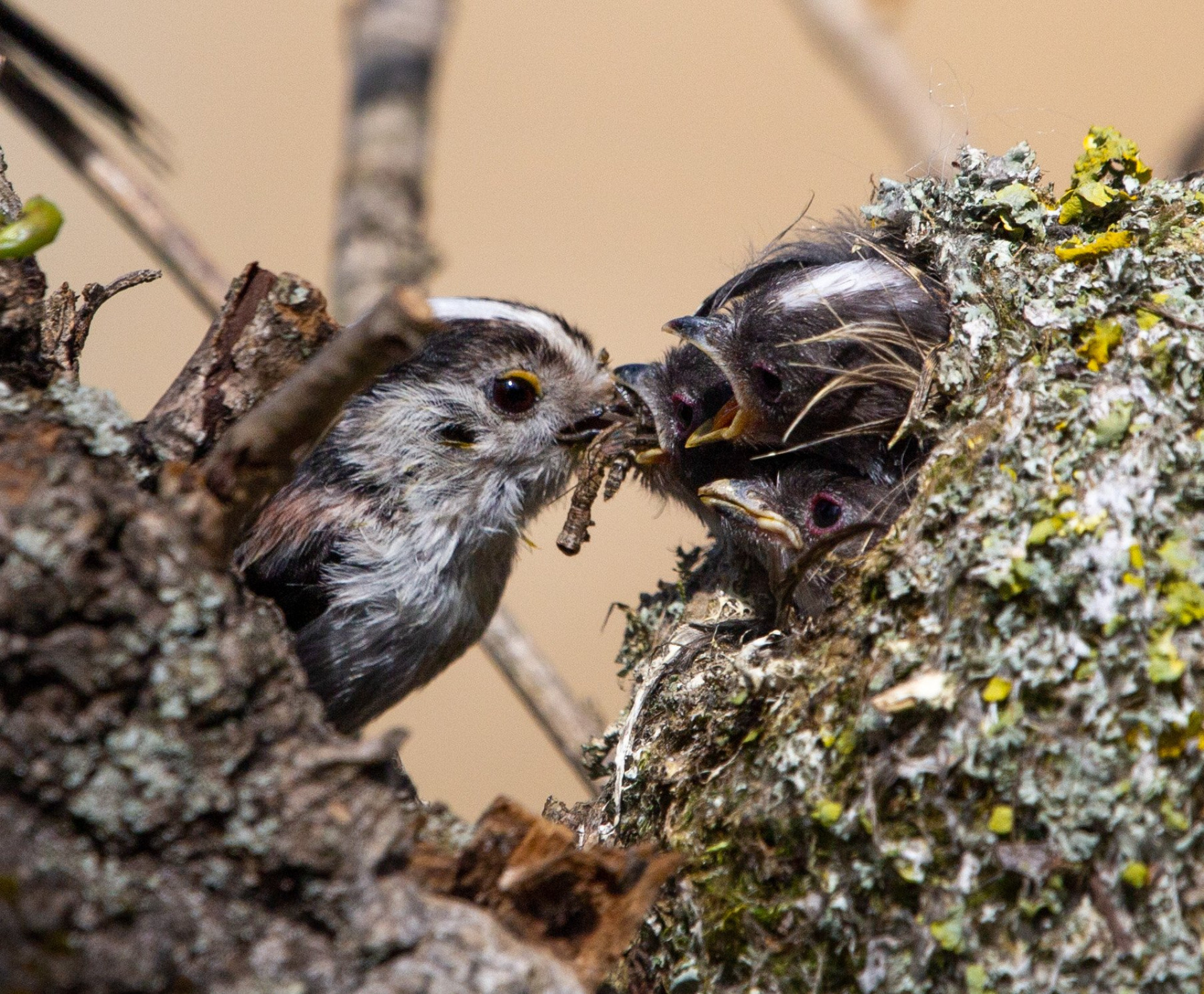 Ha jól megnézitek, ebben az adagban egy araszoló is van. Csapzott tollazatuk alapján azért a szülőket rendesen megviseli ez a pár hét, de a fiókákért mindent!