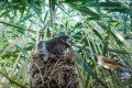 A kakukkfióka kissé kinőtte a fészket. Nem látszik, de ott van alatta