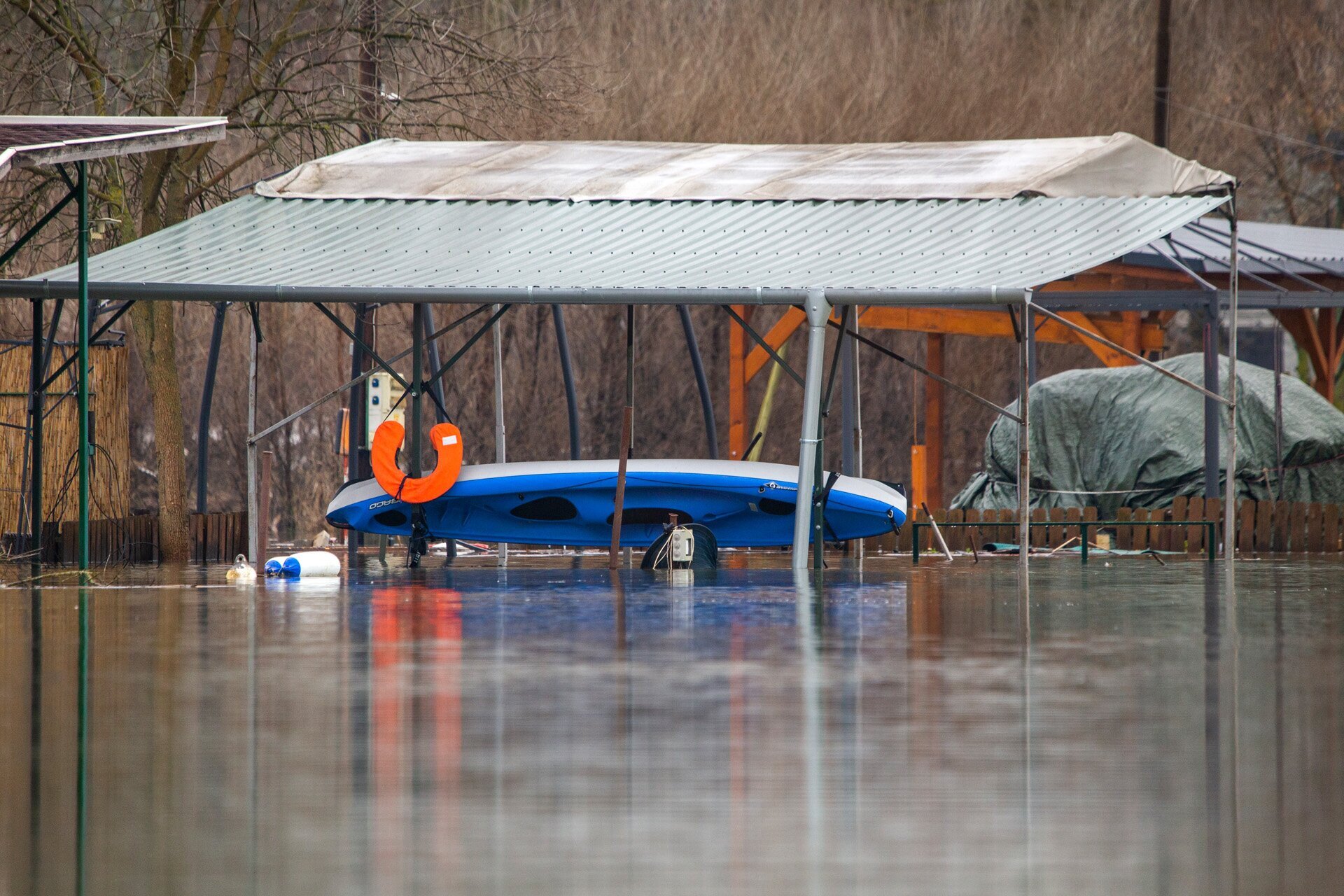 Ez a kajak még épp megúszta a téli fürdést, de hogy a fedett stégen még mi lehet a víz alatt, azt nem tudjuk