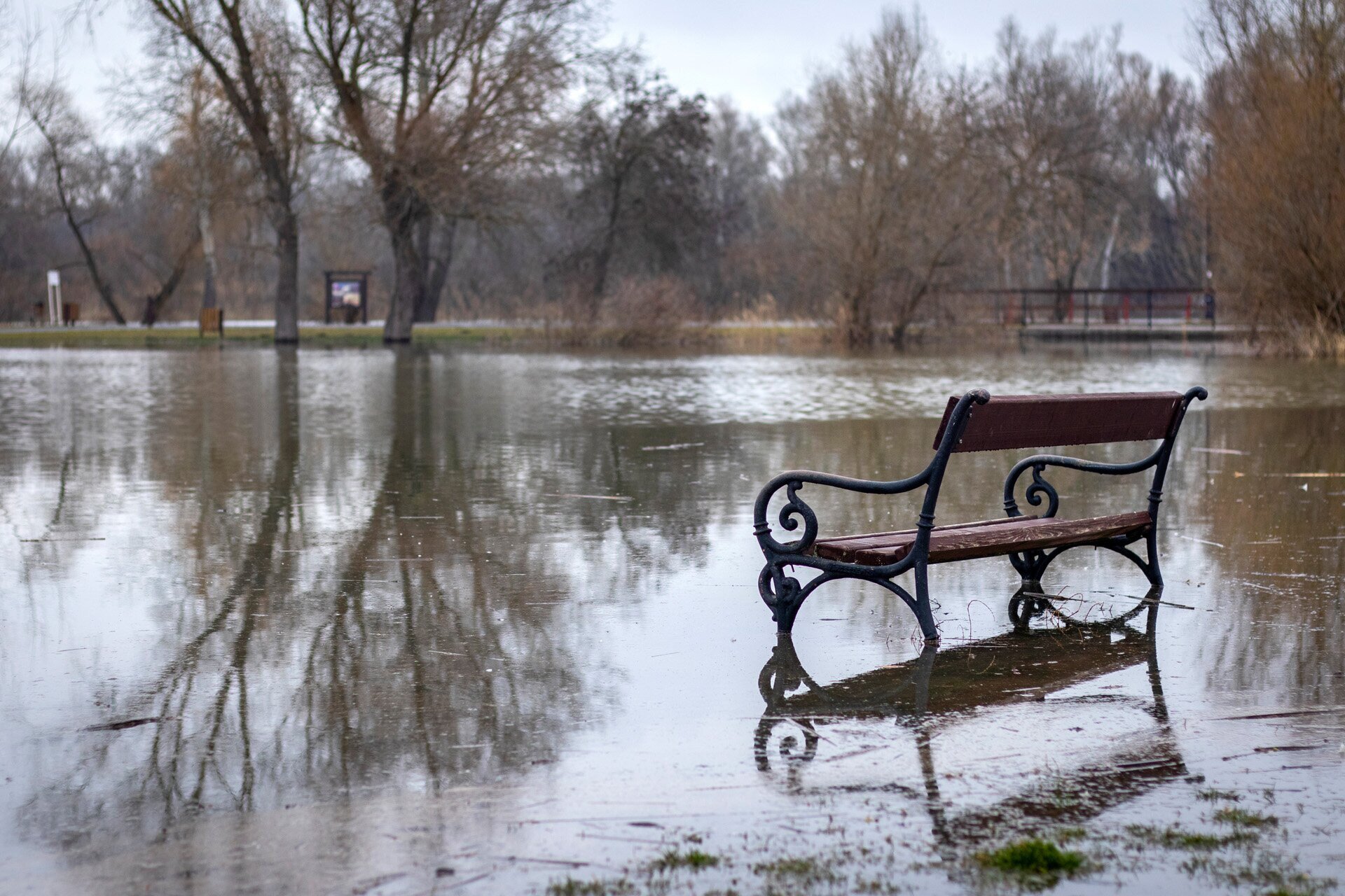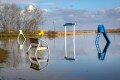 A poroszlói strandon is több a víz, mint kéne, mert bár a vízijátékok nyáron valóban vízben vannak, a padnak még szárazon kéne lennie