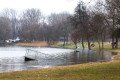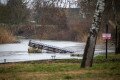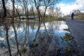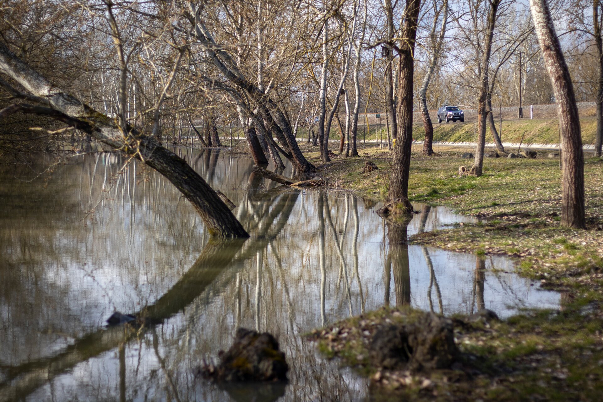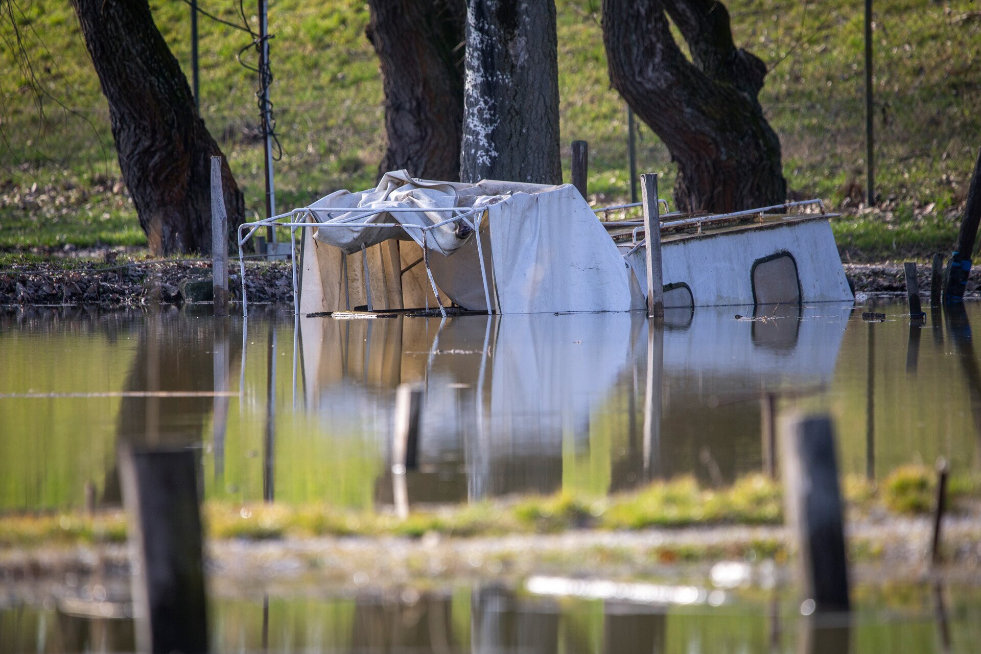 De a zsilip túloldalán sem jobb a helyzet, itt is víz árasztotta el a füves partot