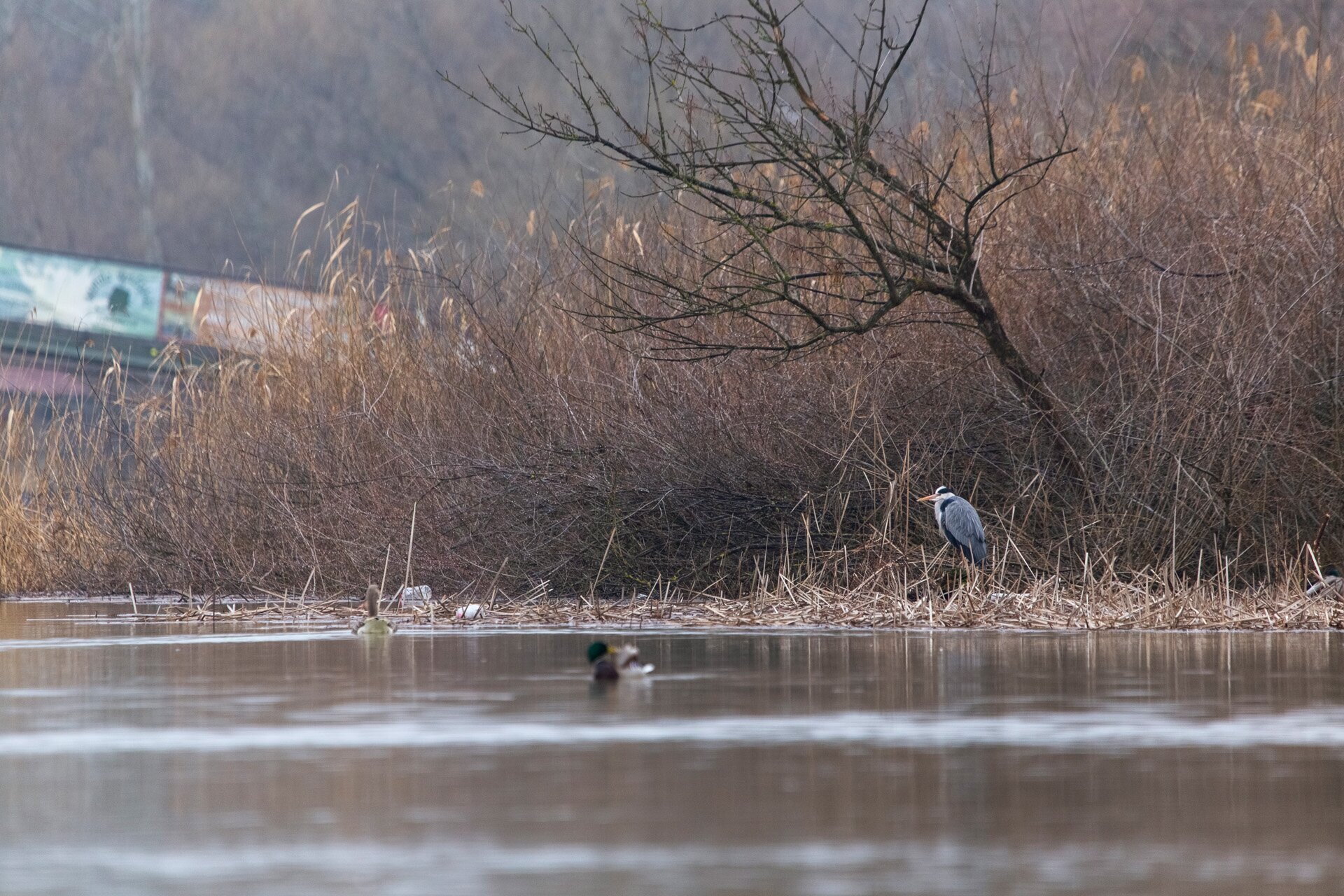 Ez a szürke gém sem izgatja magát túlzottan a hirtelen jött nagy mennyiségű víz miatt