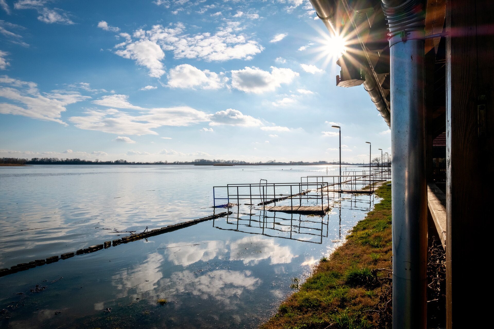 A tiszafüredi strandon is küzdenek a stégek a megemelkedett vízszinttel