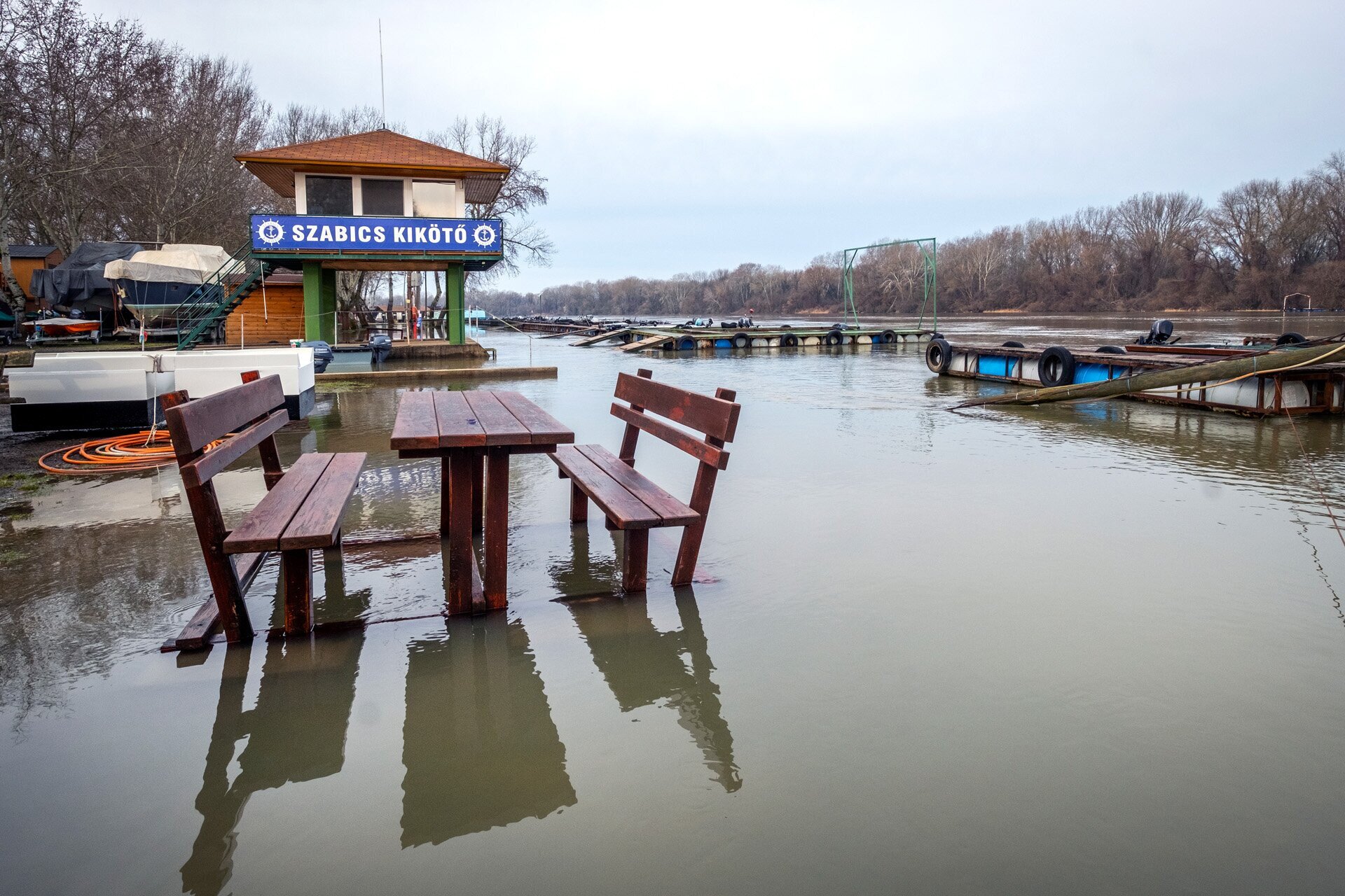 Tiszaörvényen van a Szabics kikötő is, amelynek nagy részét szintén elárasztotta a víz