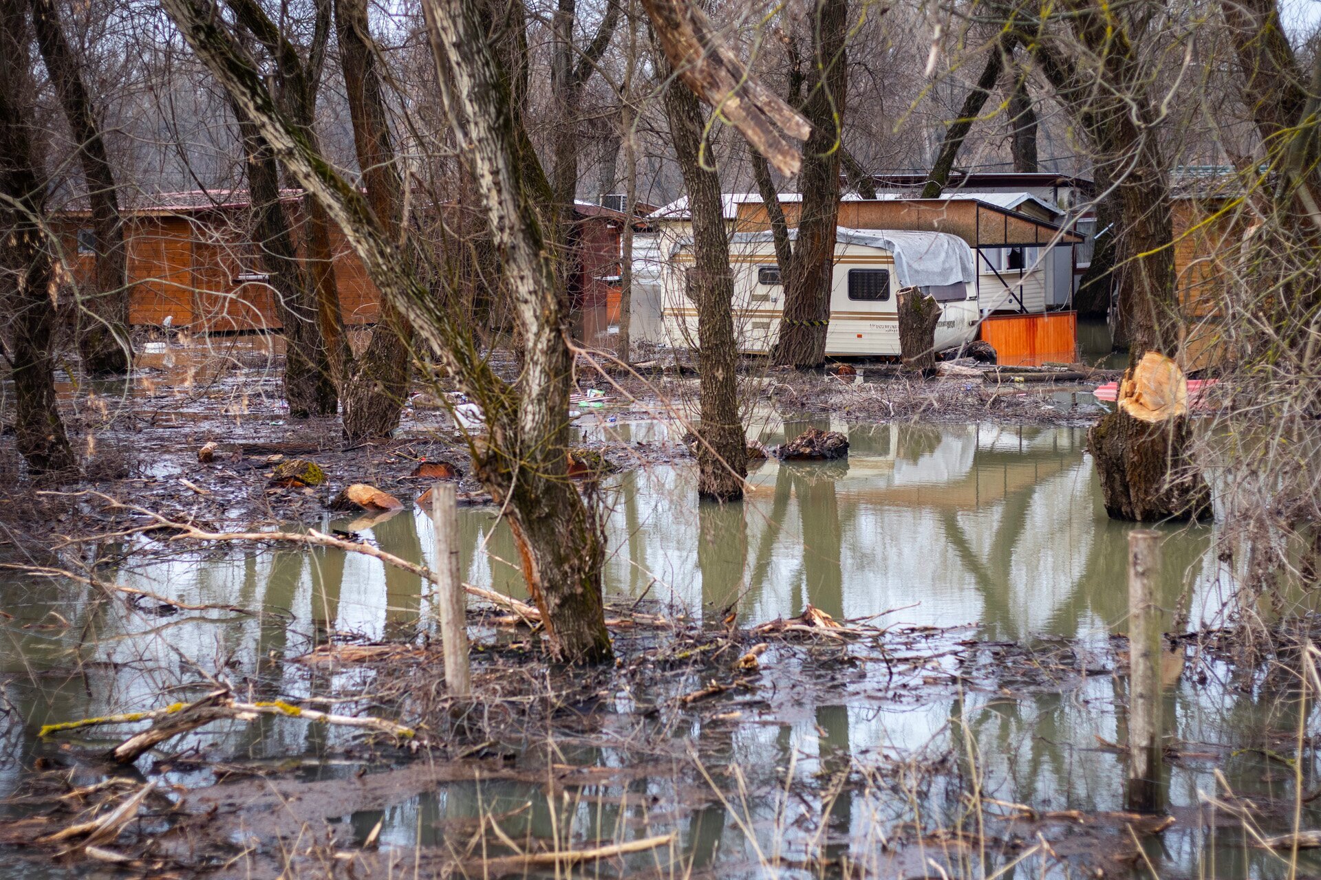 Bár most már apad a Tisza, egy ideig még biztosan nem tudnak bejutni a tulajok a házakhoz, lakókocsikhoz