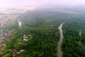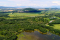 Zempléni látkép, jól kivehető a megye nevét adó egykori vár helye, melyben a két templom is áll