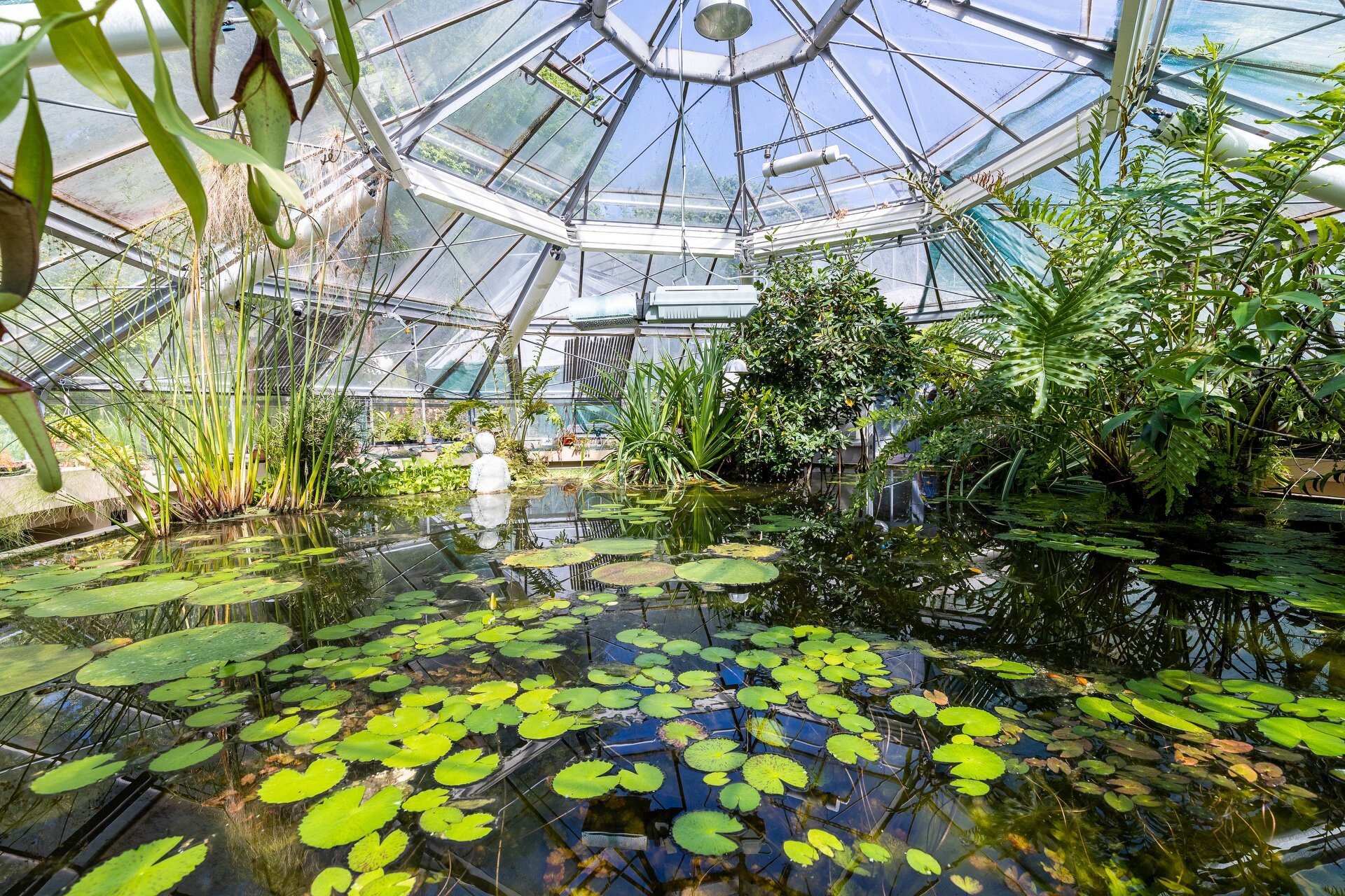 A Viktória-ház medencéjében - ahol az amazóniai-tündérrózsák találhatóak - 2019-ben avatták fel a Nemecsek-szobrot