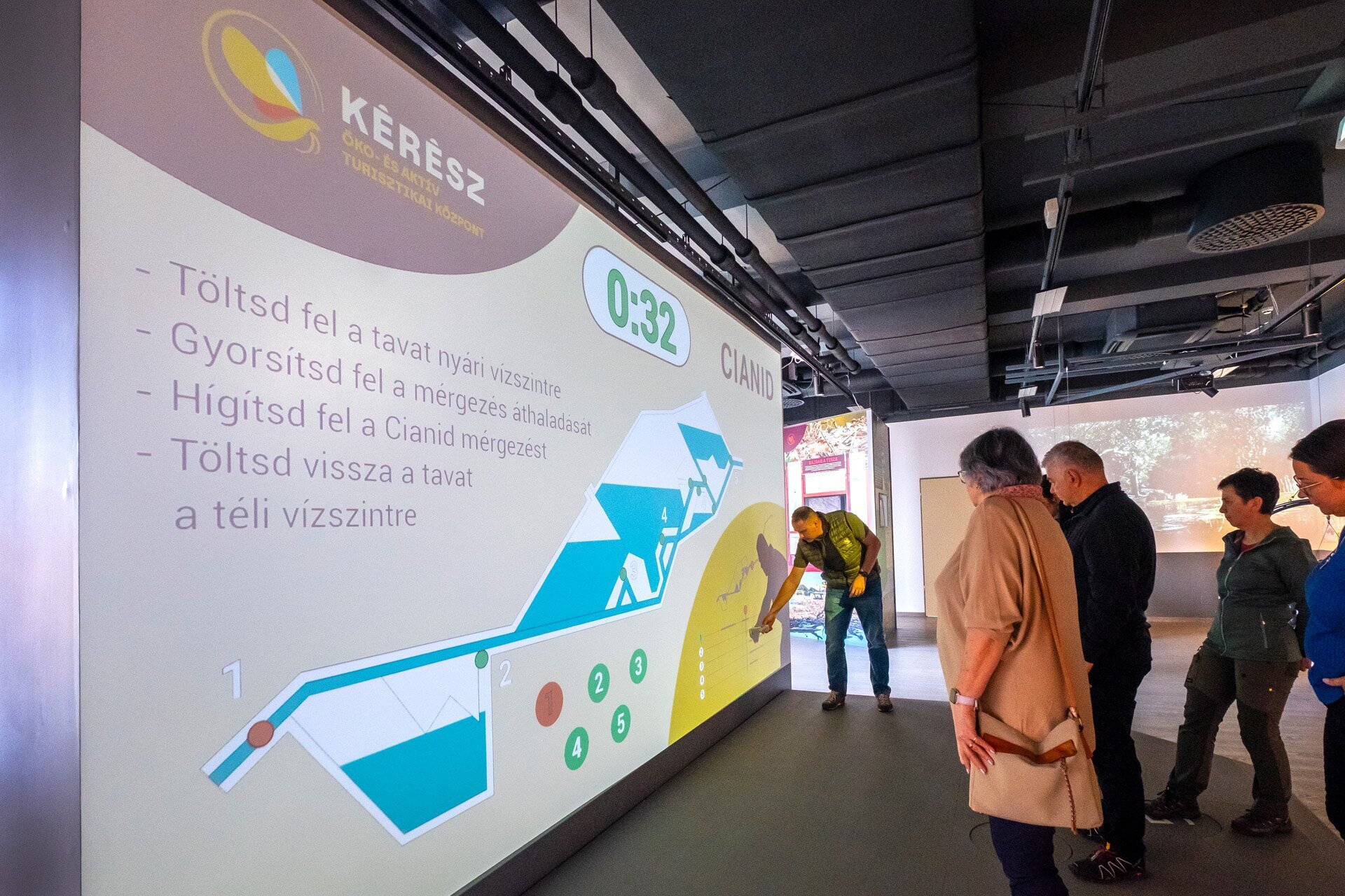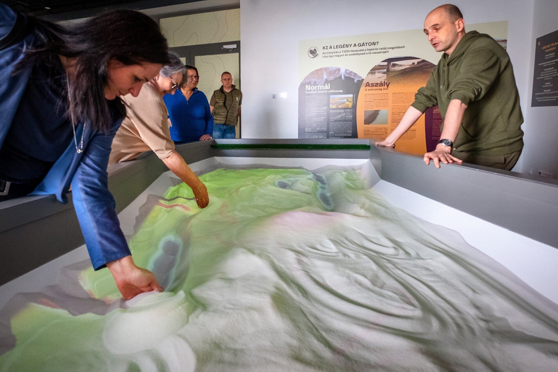A vízszintszabályozós játéknál Sztricskó Tamás azt is elmagyarázza, miért engedik le minden télen a Tisza-tavat. Tomi a kinti és benti túrák mellett a fotós túrákat is vezeti