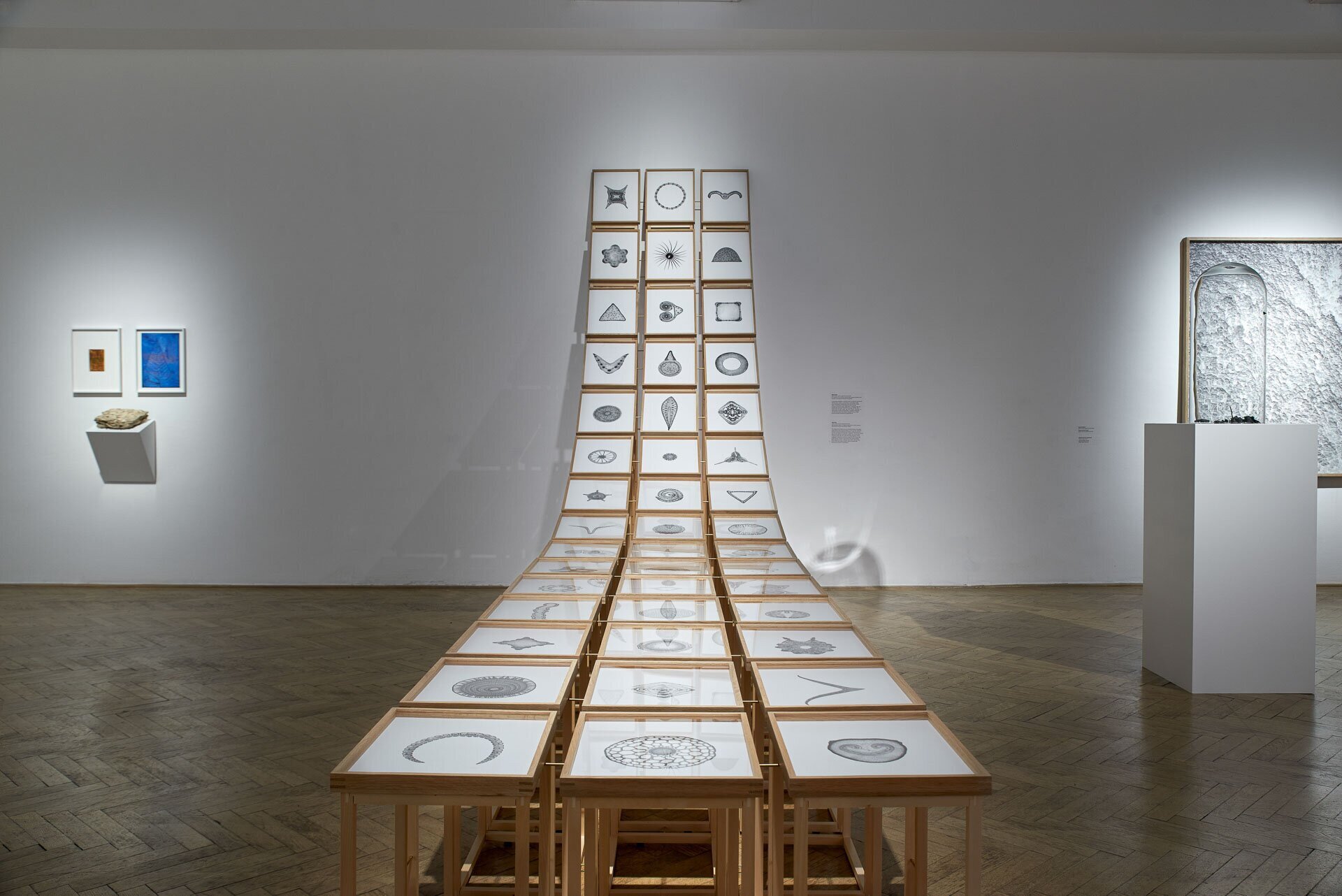 A képen az első és az utolsó variáció látható, a kiállításon viszont a kettő közötti 40 fázis is. Sőt, a nyersanyag is. Ha többet mondanánk, az spoilerezés lenne.