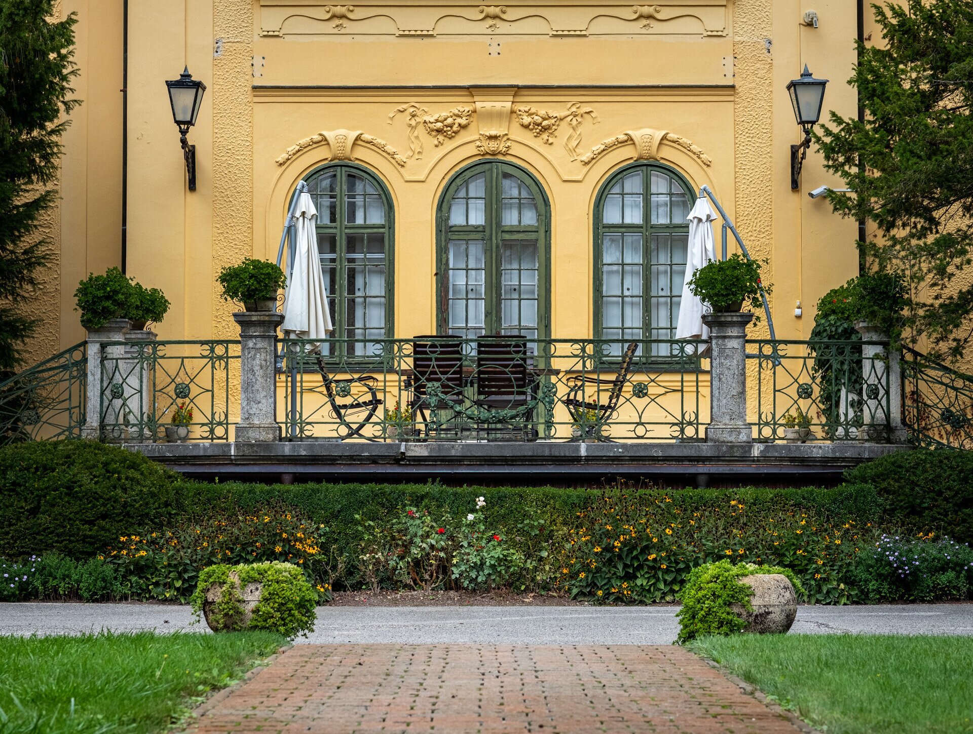Idill a kastély hátsó teraszán.