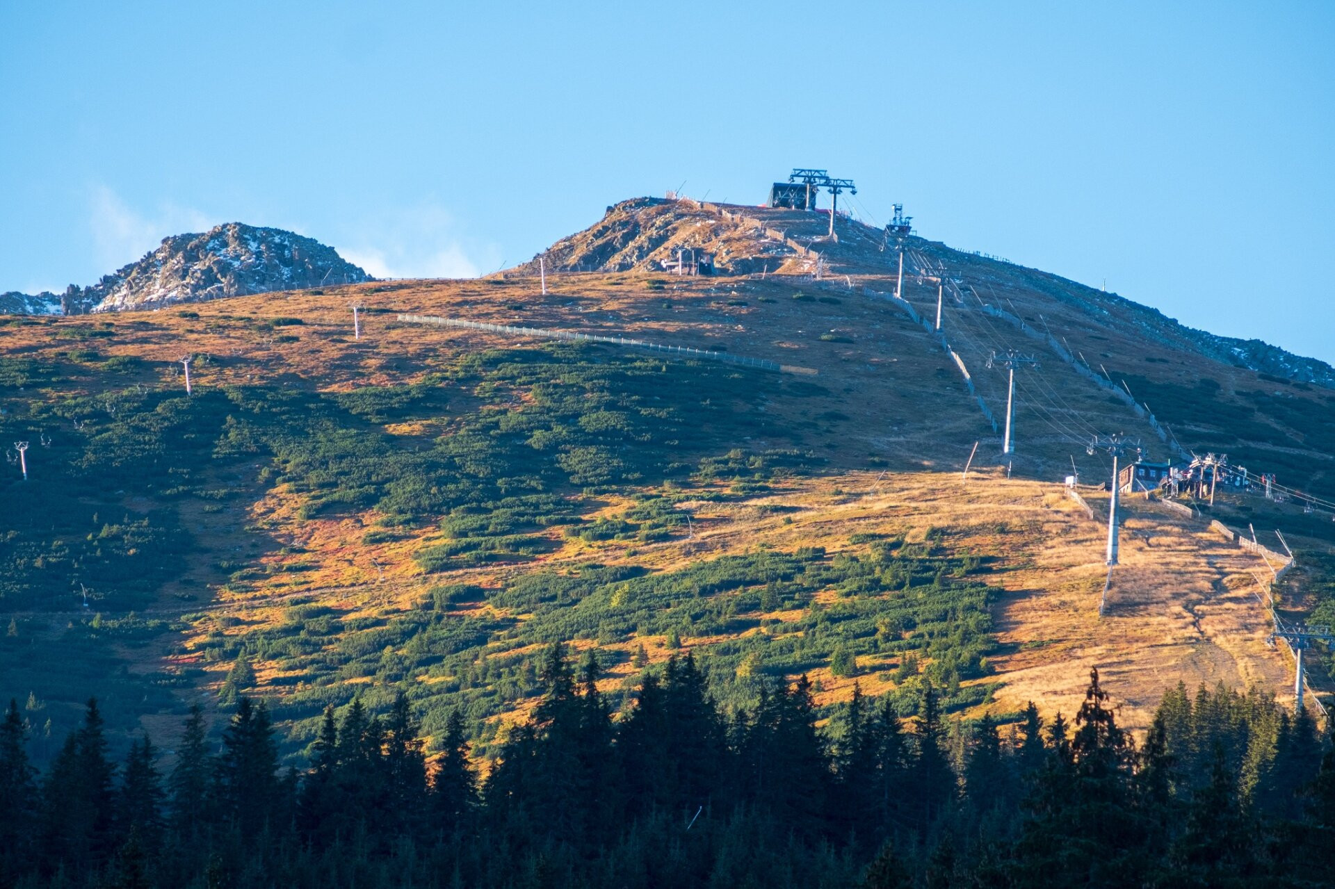 Síliftek kapaszkodnak a Chopok csúcsa felé, a főgerincre