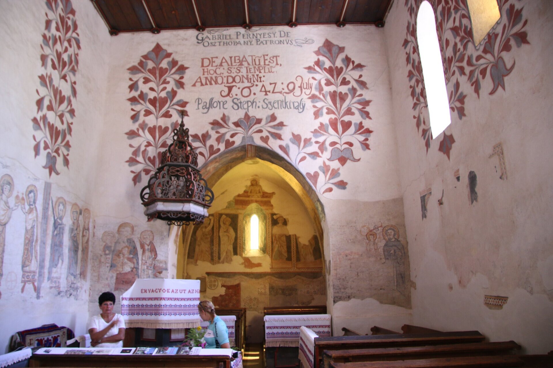 A templom belsejét középkori alakos és késő reneszánsz virágmintás falfestmények borítják