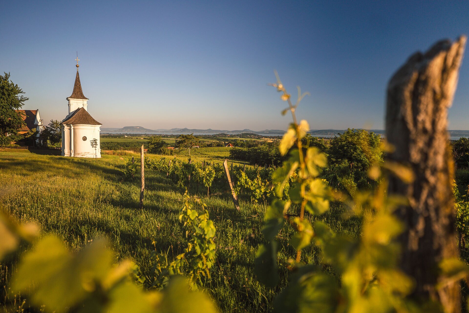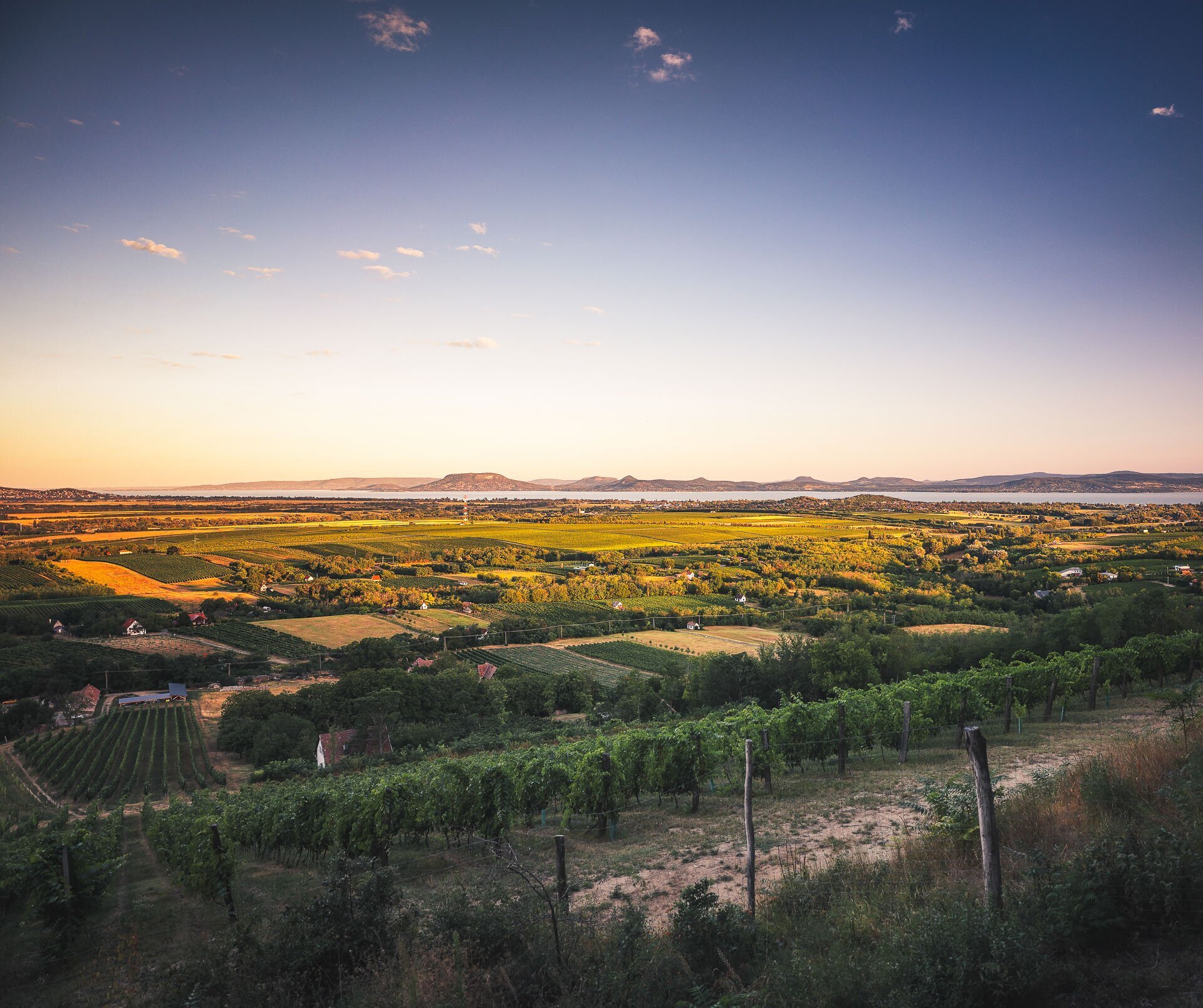 Kilátás a tóra a balatonlellei szőlőhegyről.
