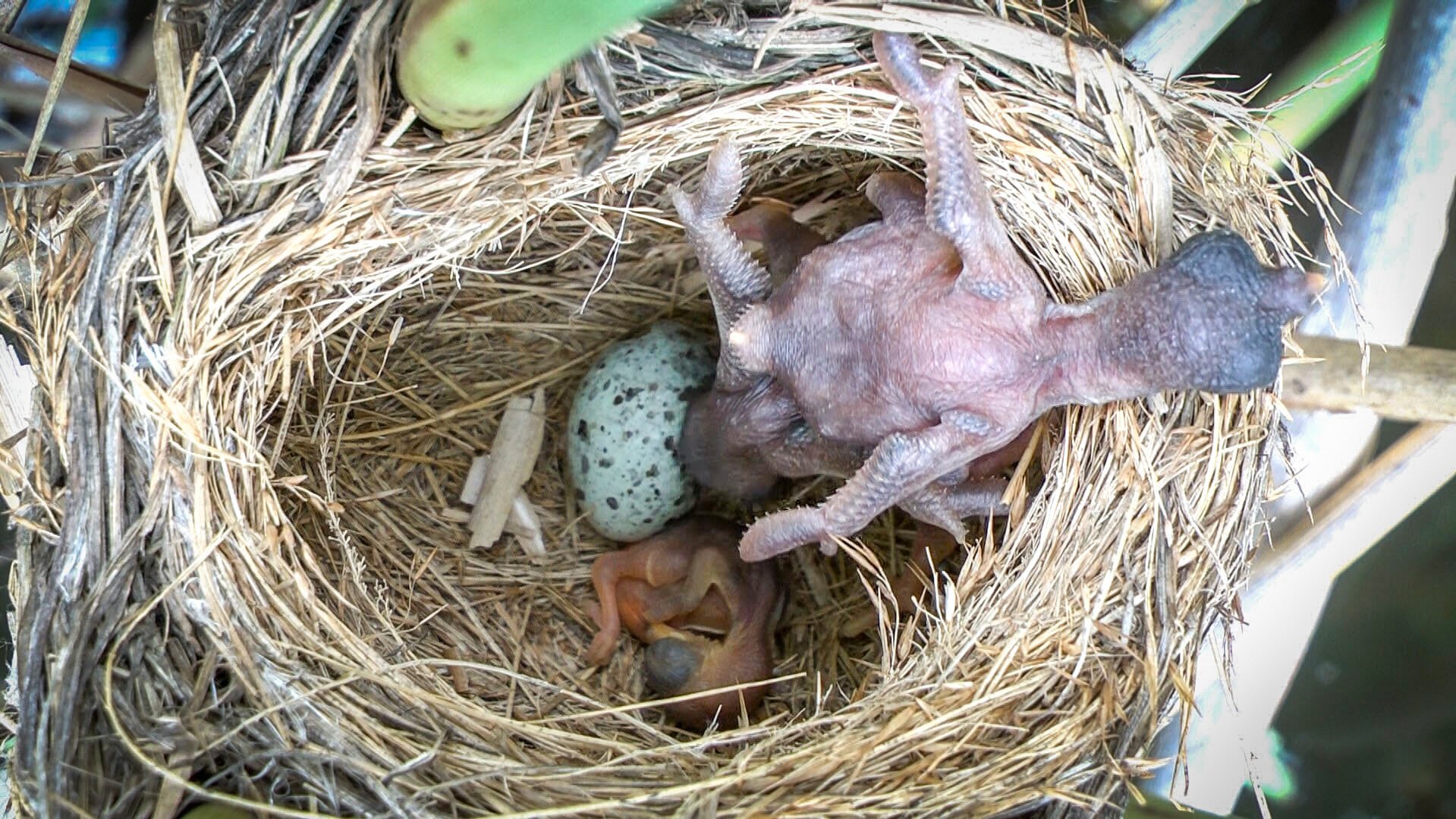 Ki sem nyílt a szemük, de megkezdik a nádirigó tojásainak és fiókáinak kilökését. Ritkaság, de ebben a fészekben két kakukk van. Egyikük szintén ki lesz lökve, hiszen csak egy maradhat.