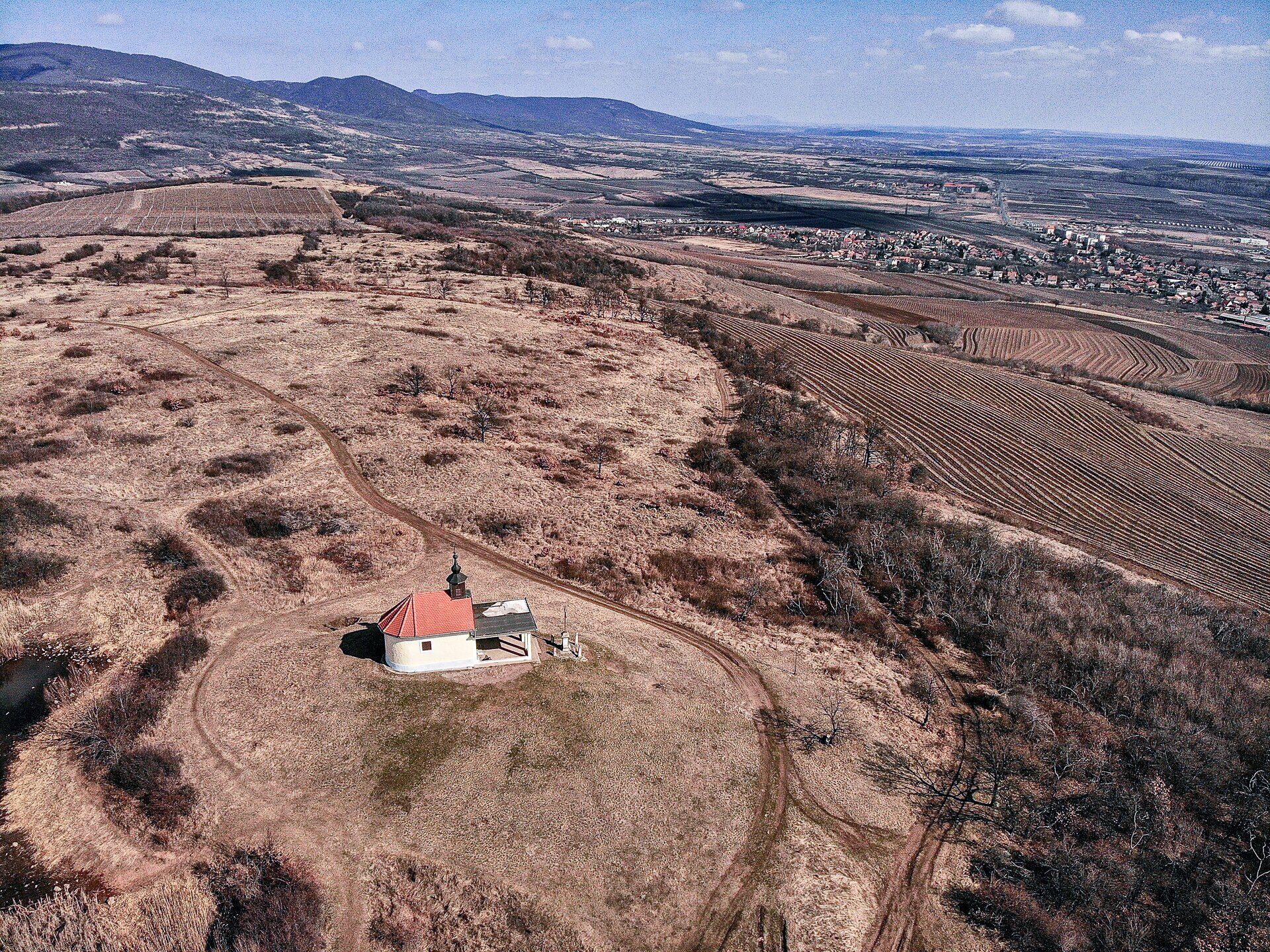 A kis dombon magányosan álló kápolna szinte hívogatja az arra járót, álljon meg előtte, csodálja meg, és járja körbe