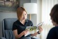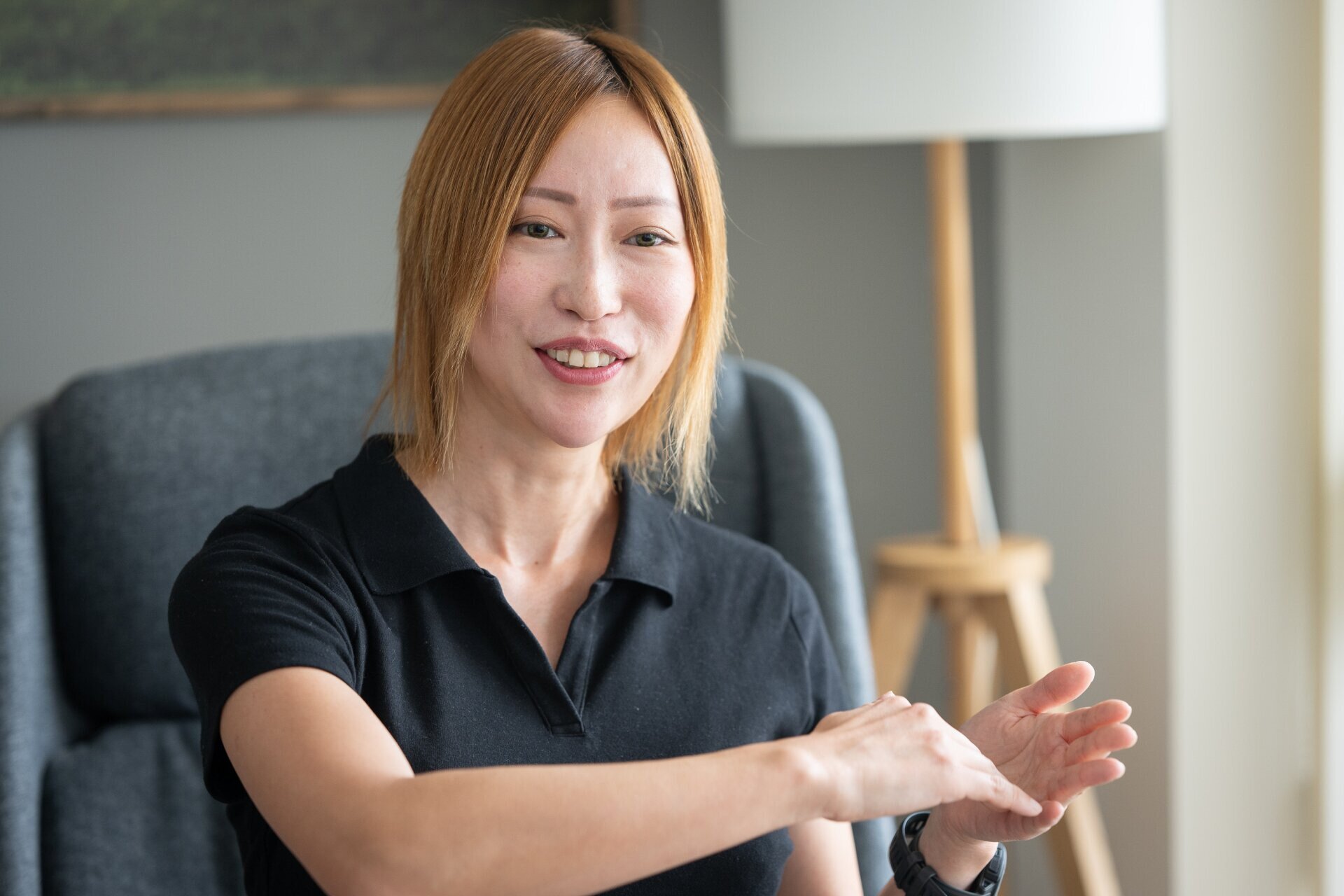 Yamada Yuka a Magyar Természetjáró Szövetség irodájában mesél a kéktúrás kalandjairól
