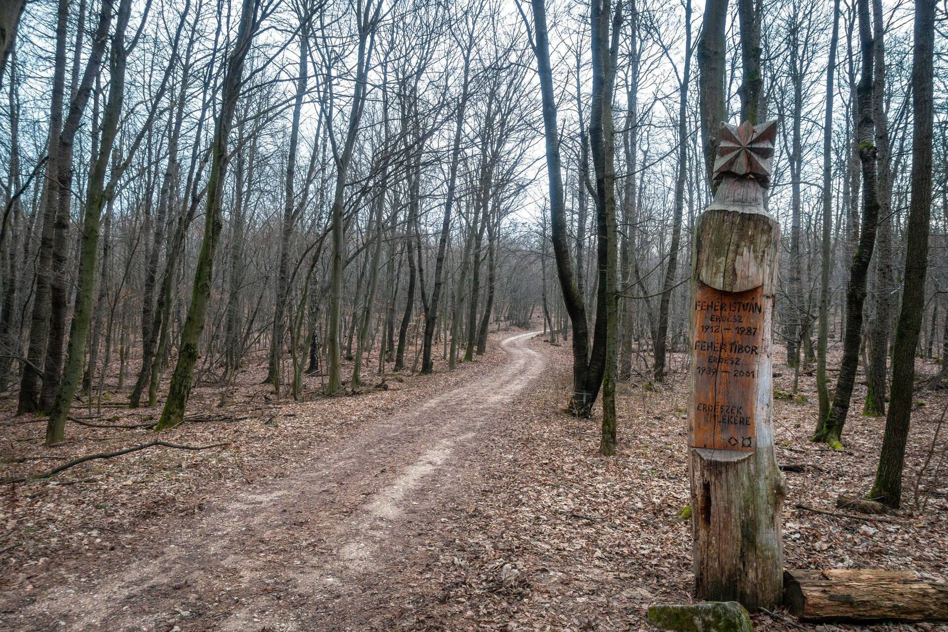 A Nagy-Kopasztól a Kutya-hegy felé, az út mellett egy erdész emlékoszlop