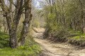 Tisztások tarkítják az erdőben kanyargó kék utat