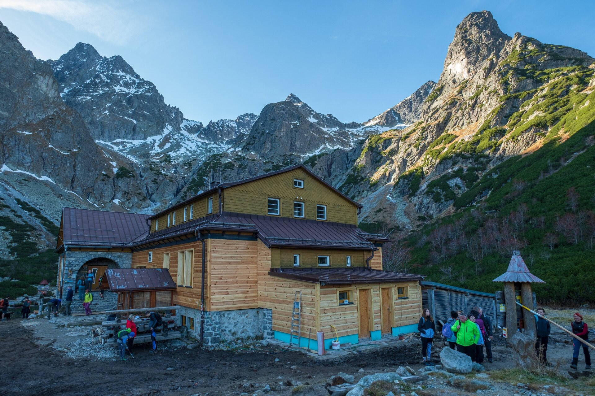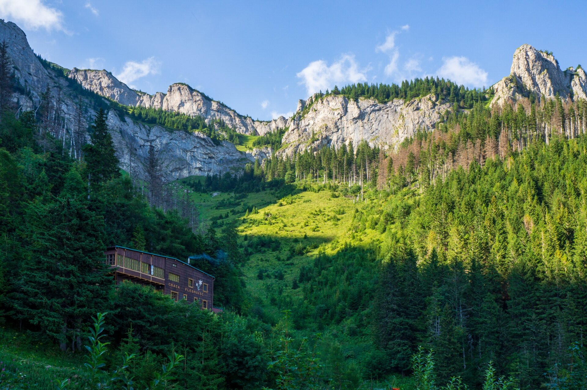A Gyopár menedékház (Chata Plesnivec) a Bélai-Tátra mészkőfodrai alatt